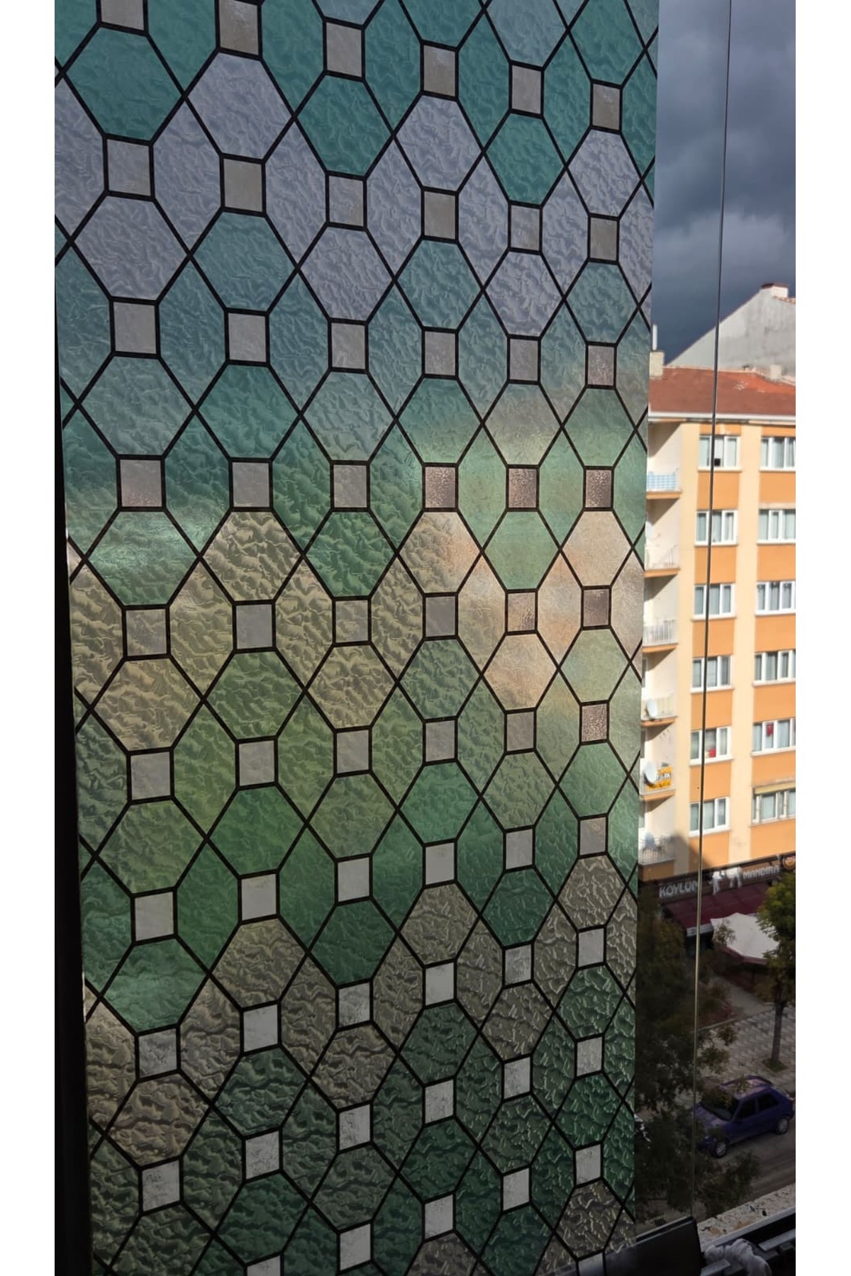 Statik Cam Filmi Yeşil Vitray Desenli Folyo – Duşa Kabin, Pencere ve Ofis Dekorasyon Kaplaması Statik Cam Filmi Yeşil Vitray Desenli Folyo – Duşa Kabin, Pencere ve Ofis Dekorasyon Kaplaması SF40 45 x 400