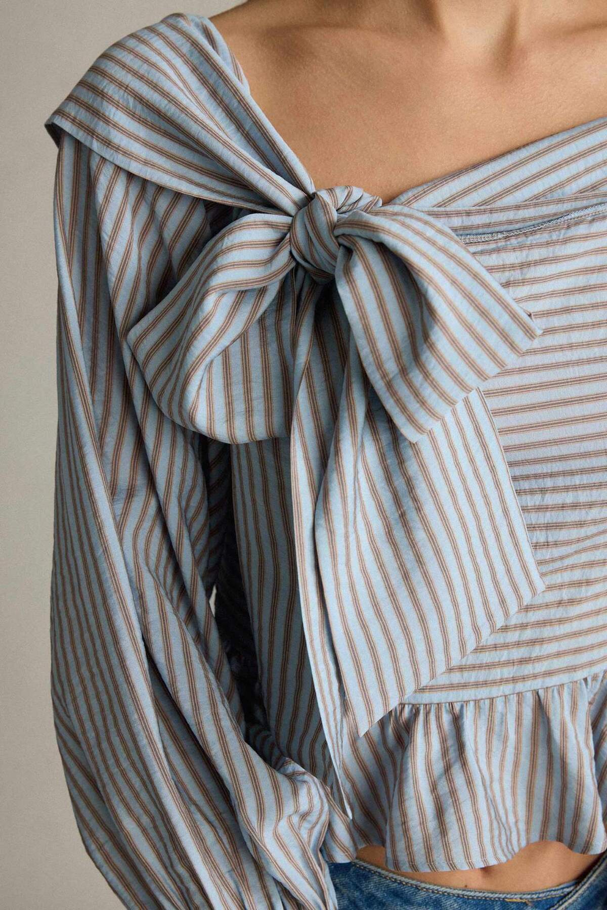 Kayık Yaka Fiyonk Detaylı Çizgili Uzun Kollu Bluz G5001AX25WN Kayık Yaka Fiyonk Detaylı Çizgili Uzun Kollu Bluz G5001AX25WN 42