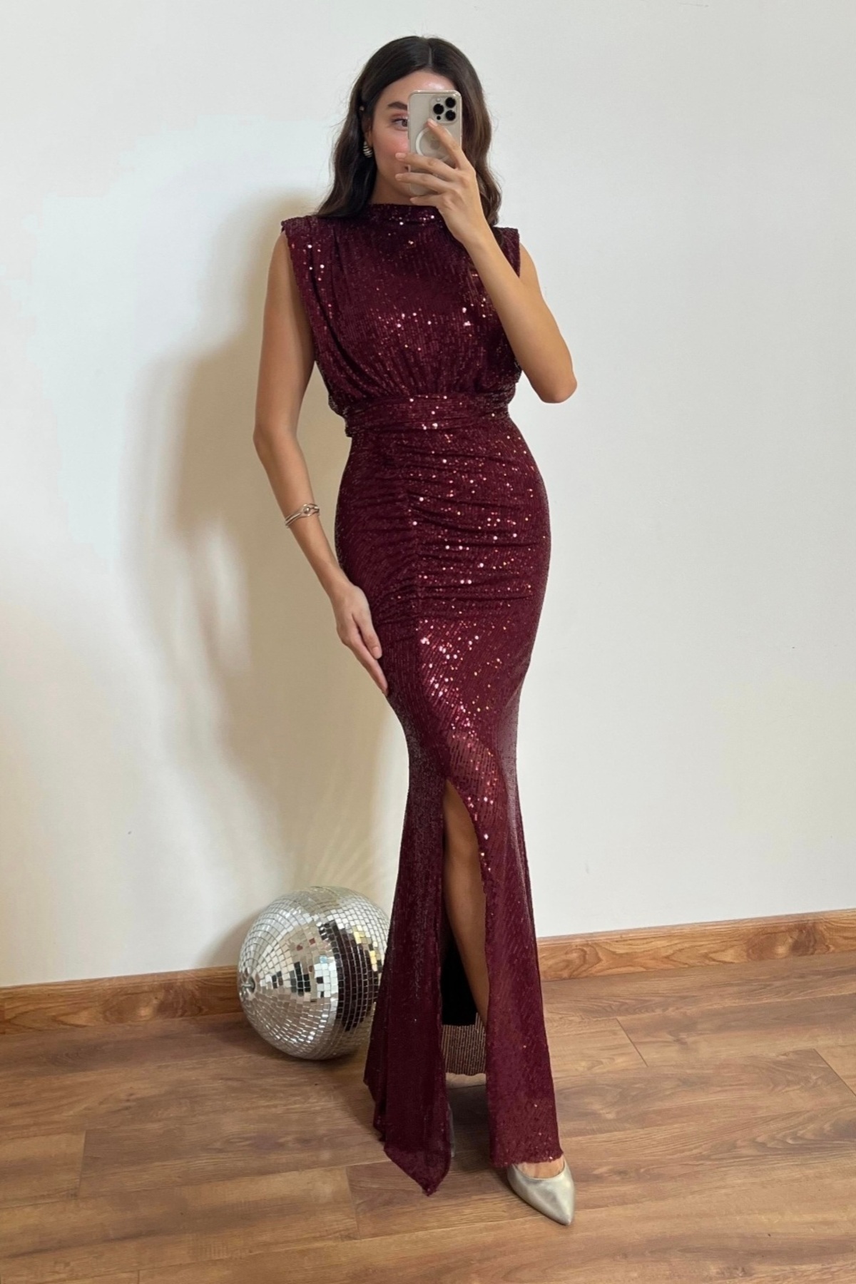 Pul Payet Kuşaklı Yırtmaçlı Büyük Bedenli İsteme Söz Nişan Düğün Özel Gün Elbisesi Abiyesi Pul Payet Kuşaklı Yırtmaçlı Büyük Bedenli İsteme Söz Nişan Düğün Özel Gün Elbisesi Abiyesi 4009 50