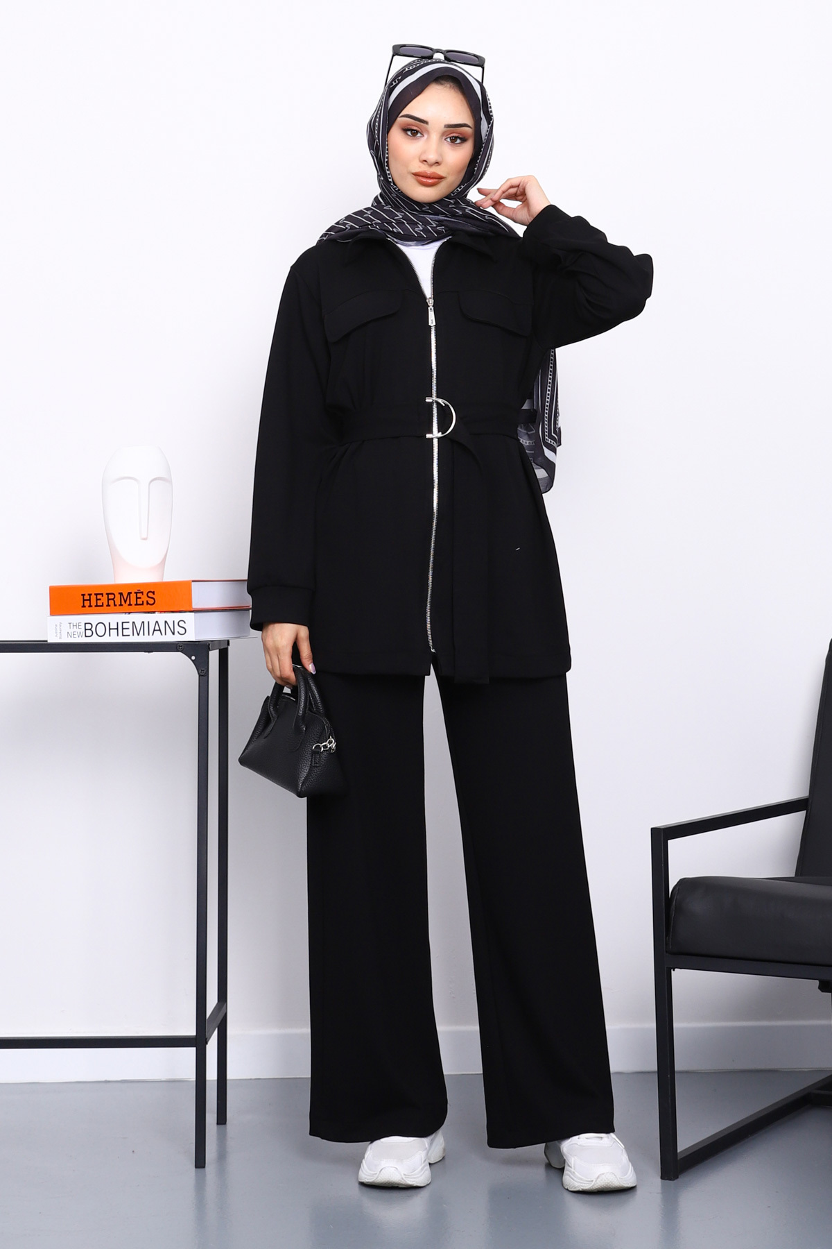 Siyah Cepli Bel Kuşaklı Modal Takım Siyah Cepli Bel Kuşaklı Modal Takım IMJ008110 44
