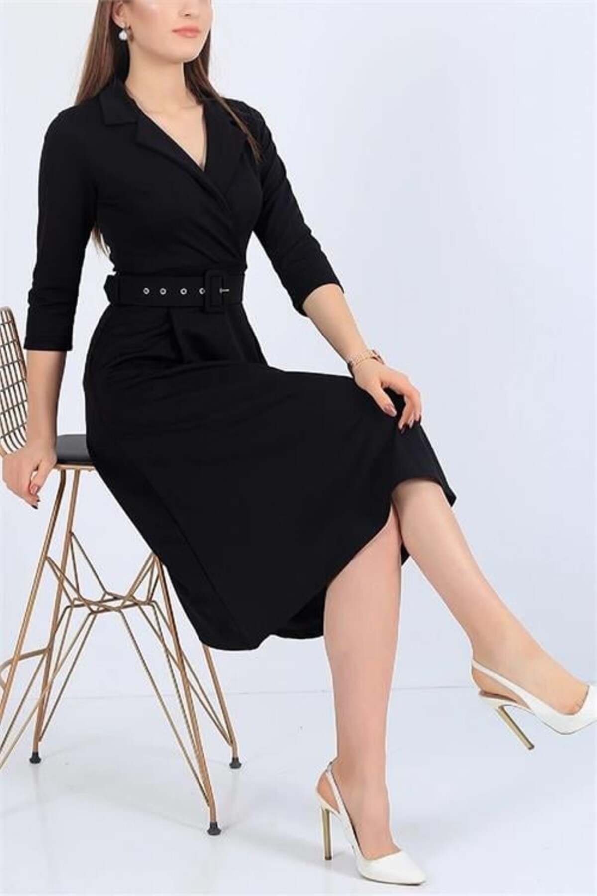 Kadın yaka detaylı midi boy örme elbise DPK4360 Kadın yaka detaylı midi boy örme elbise DPK4360 42