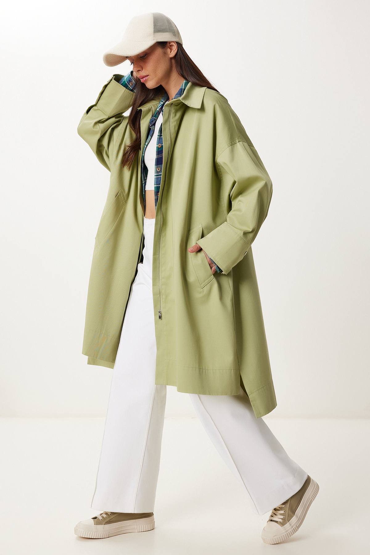 Kahverengi Oversize Fermuarlı Panço Trençkot Kahverengi Oversize Fermuarlı Panço Trençkot TR-01 L