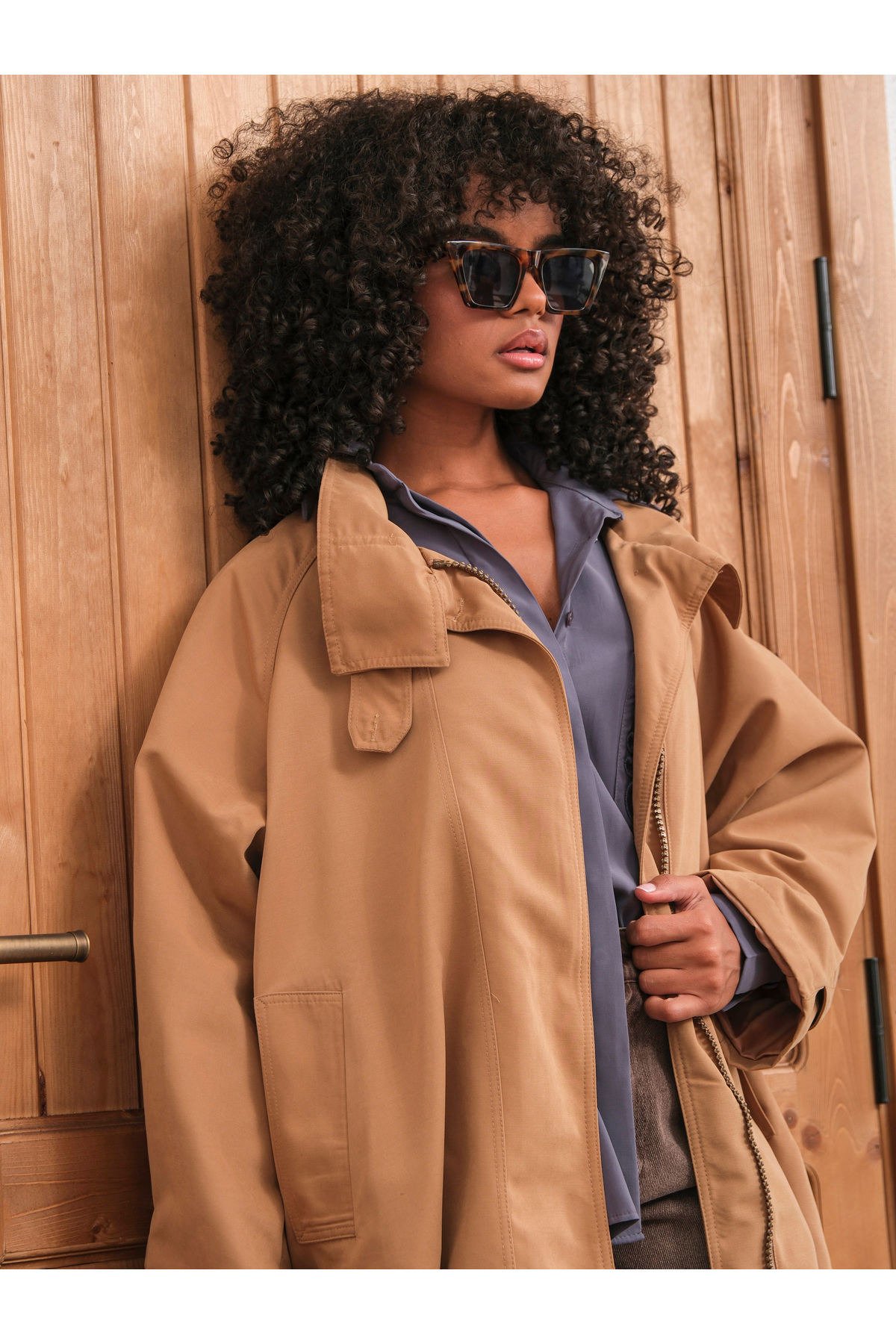 Camel Oversize Fermuarlı Panço Trençkot Camel Oversize Fermuarlı Panço Trençkot TR-01 L