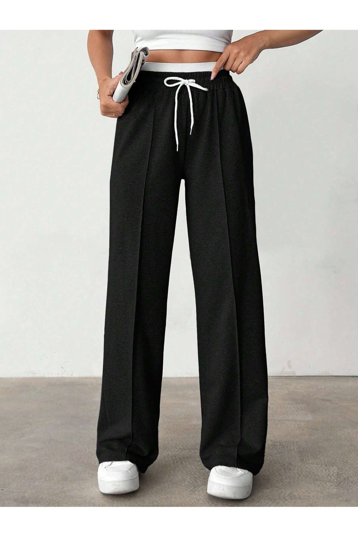 Kadın Oversize Yazlık Penye Kumaş Beli Lastikli Bol Paça Eşofman Altı Kadın Oversize Yazlık Penye Kumaş Beli Lastikli Bol Paça Eşofman Altı siyahçımalı L