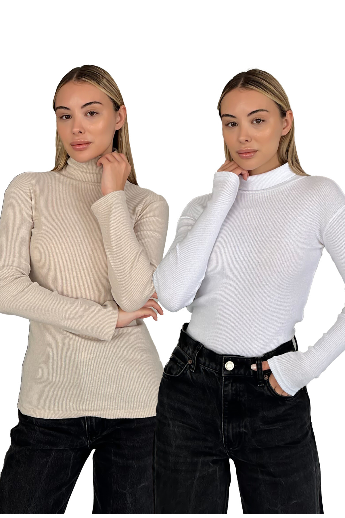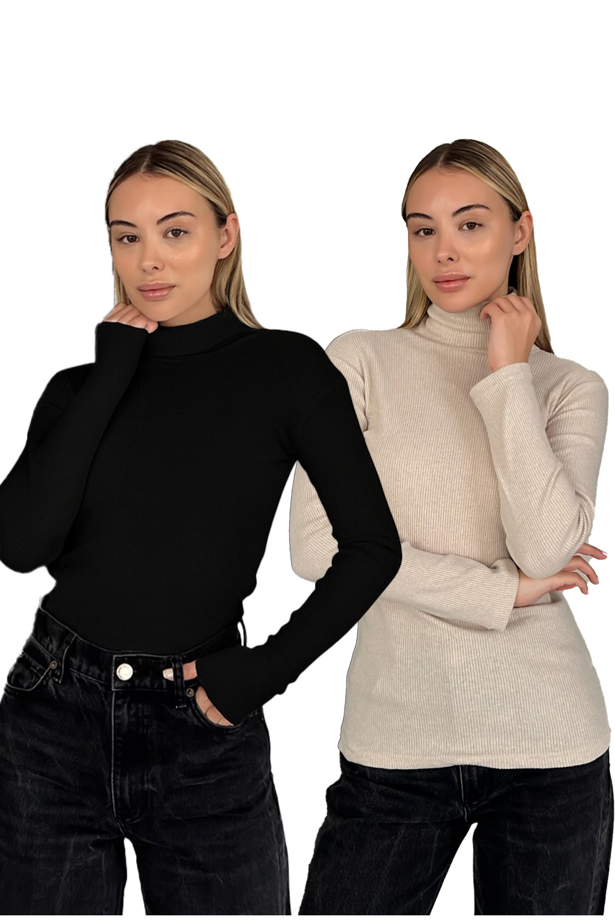 Unisex Pamuklu Balıkçı Yaka Boğazlı Kazak 2'li Set - Bej Gri Unisex Pamuklu Balıkçı Yaka Boğazlı Kazak 2'li Set - Bej Gri RDKKAZAK2Lİ L