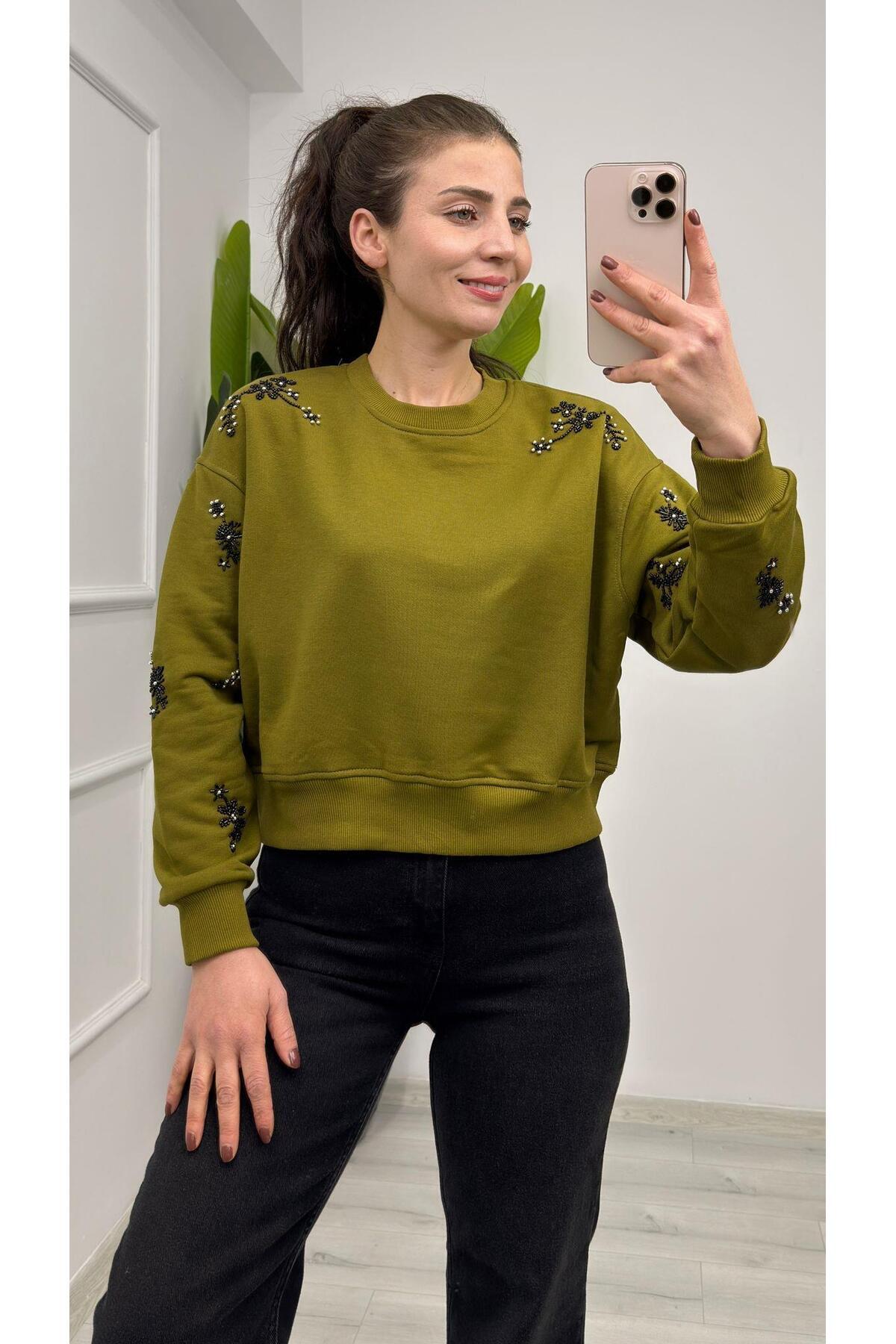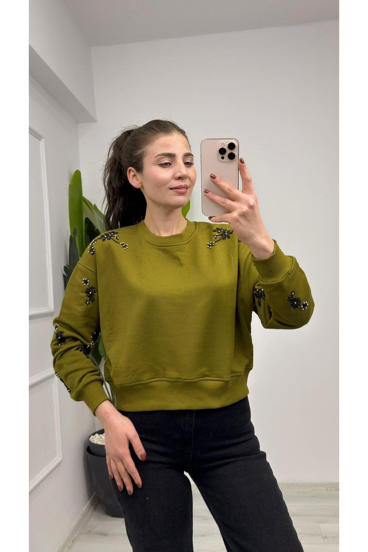 5787 Boncuk İşleme Detaylı Sweat Yağ Yeşili 5787 Boncuk İşleme Detaylı Sweat Yağ Yeşili TNMB0XTNMB00820 L