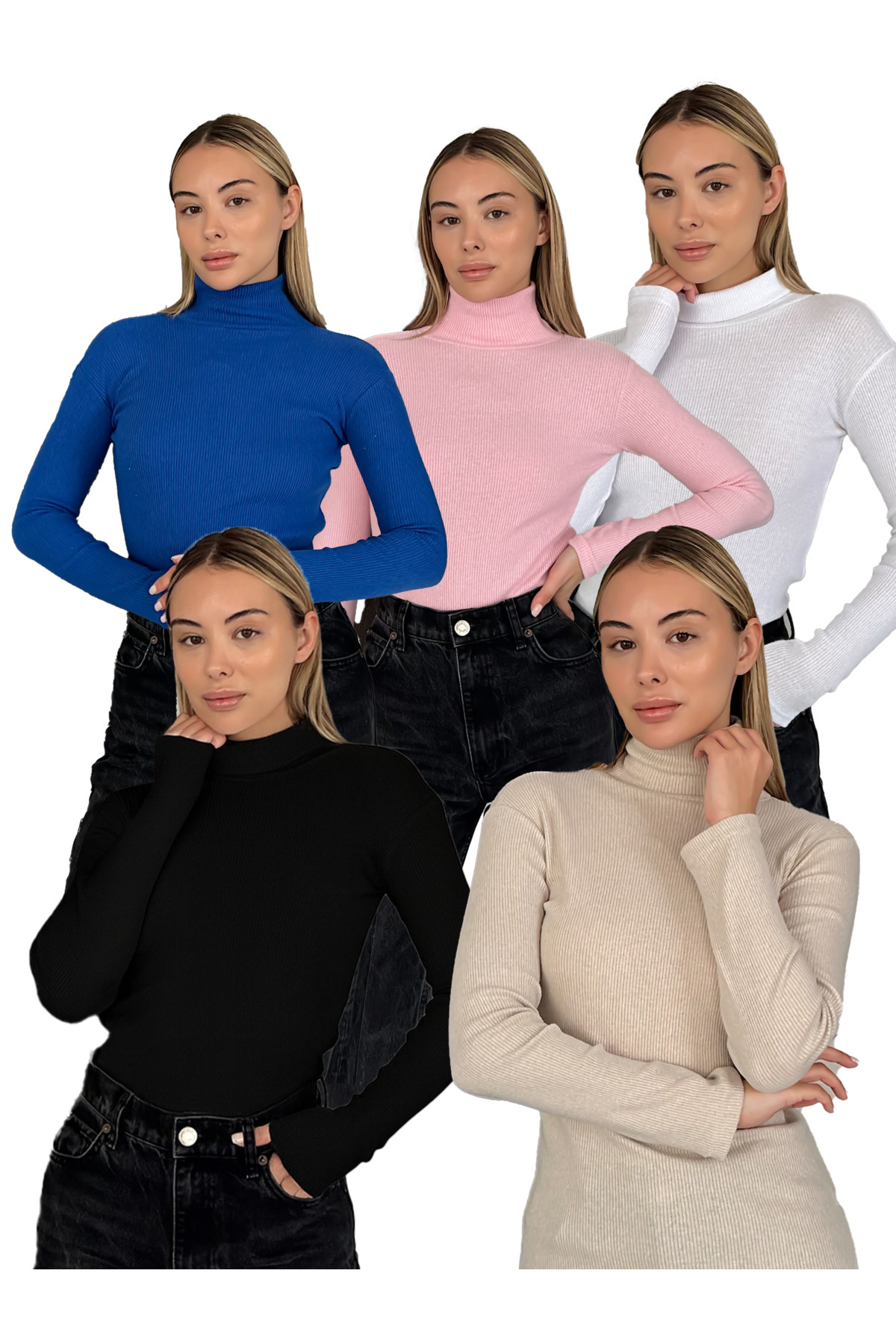 Unisex Pamuklu Balıkçı Yaka Boğazlı Kazak 5'li Set - Gri Saks Beyaz Siyah Bej Unisex Pamuklu Balıkçı Yaka Boğazlı Kazak 5'li Set - Gri Saks Beyaz Siyah Bej RDK5LISETKAZAK XL