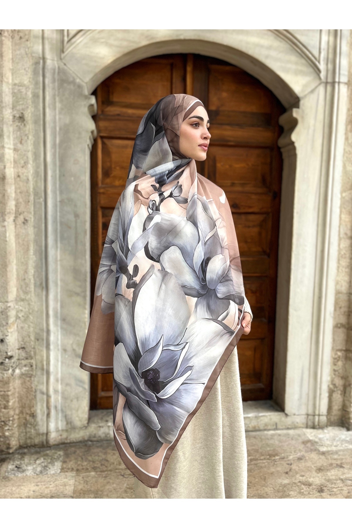 Desenli Bambu Kraş Şal - Kahve Tonları Desenli Bambu Kraş Şal - Kahve Tonları 07 تک سایز