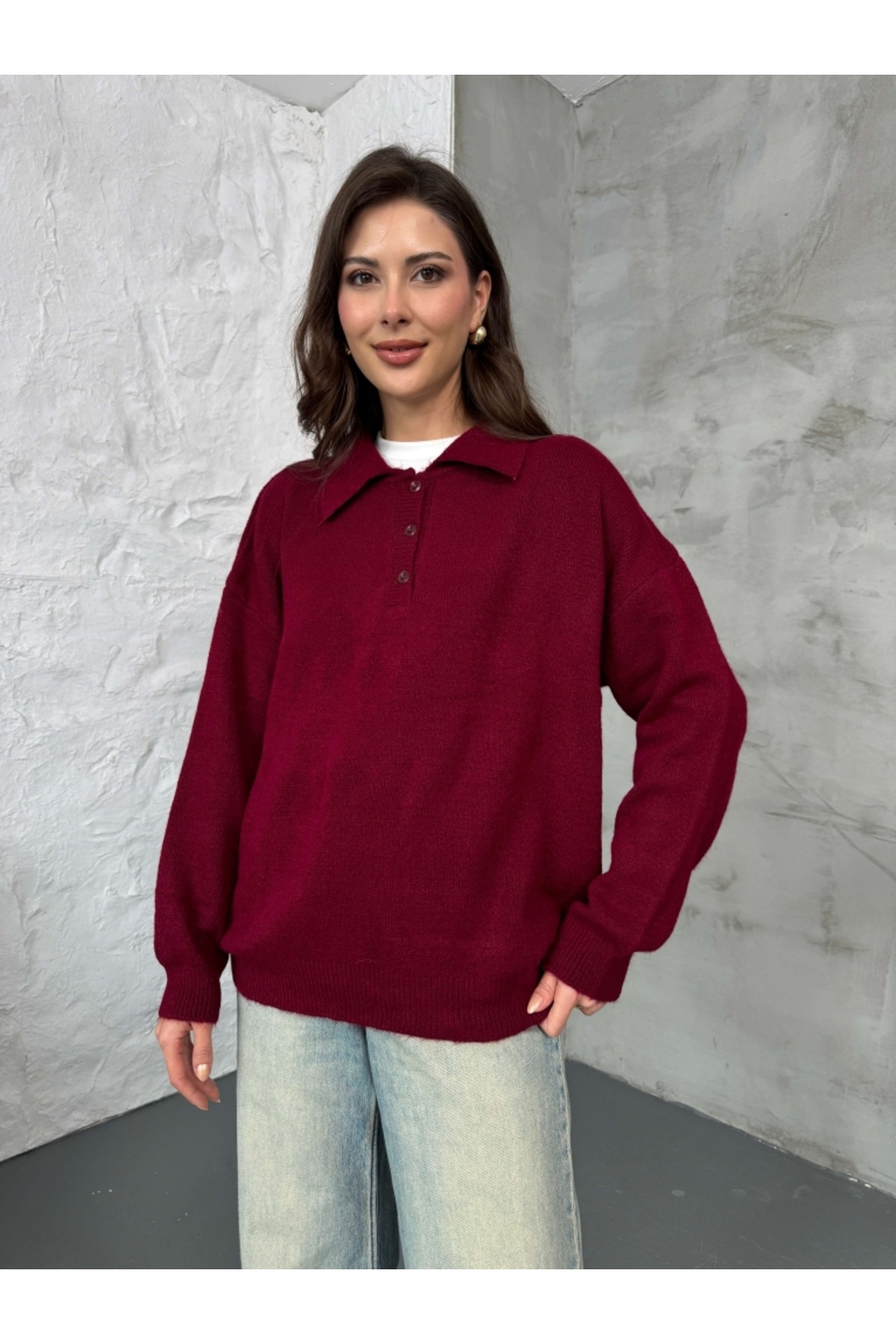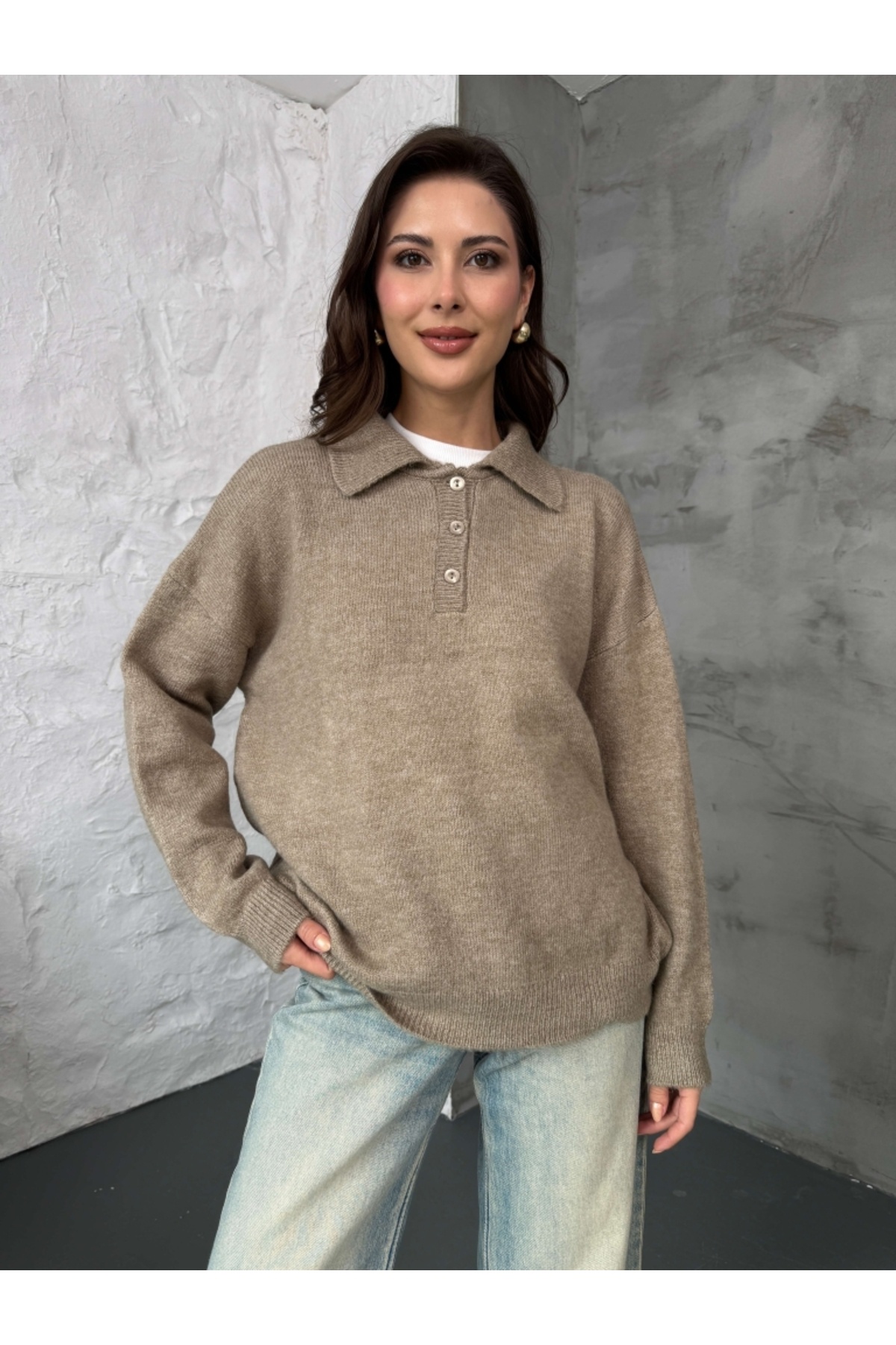 Vizon Polo Yaka Düğmeli Triko Kazak Vizon Polo Yaka Düğmeli Triko Kazak 2482 Standart