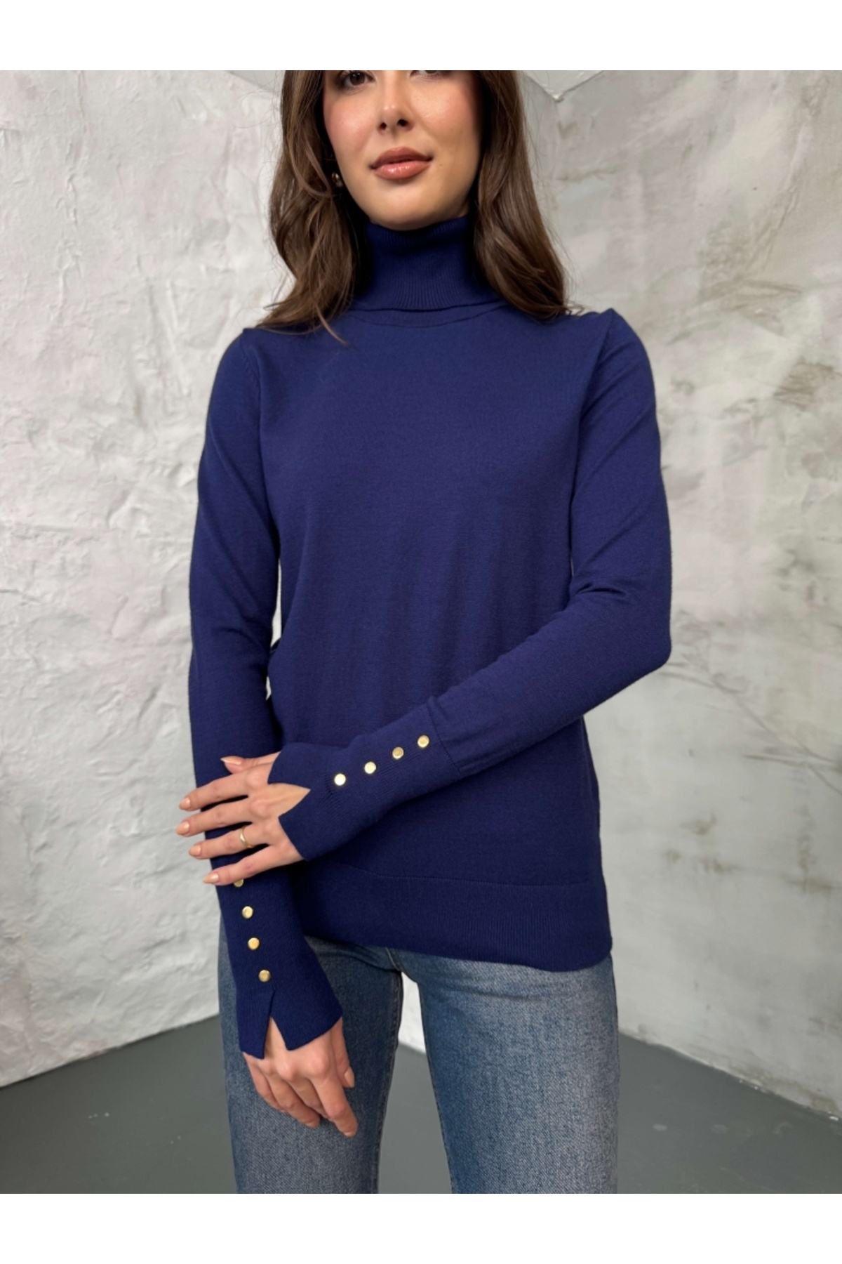 Lacivert Balıkçı Yaka Gold Düğmeli Triko Bluz Lacivert Balıkçı Yaka Gold Düğmeli Triko Bluz 2315 Standart