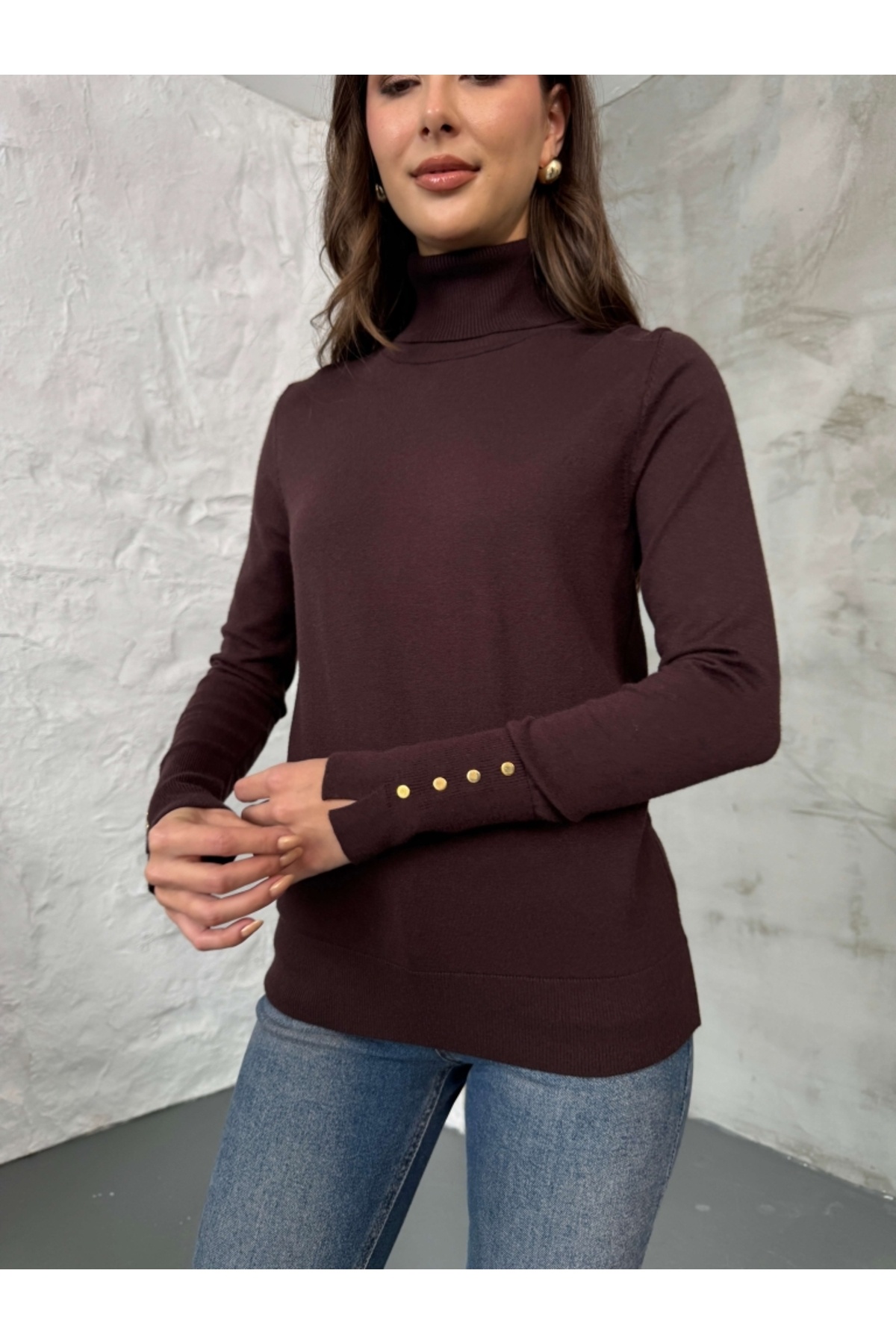 Kahverengi Balıkçı Yaka Gold Düğmeli Triko Bluz Kahverengi Balıkçı Yaka Gold Düğmeli Triko Bluz 2315 Standart