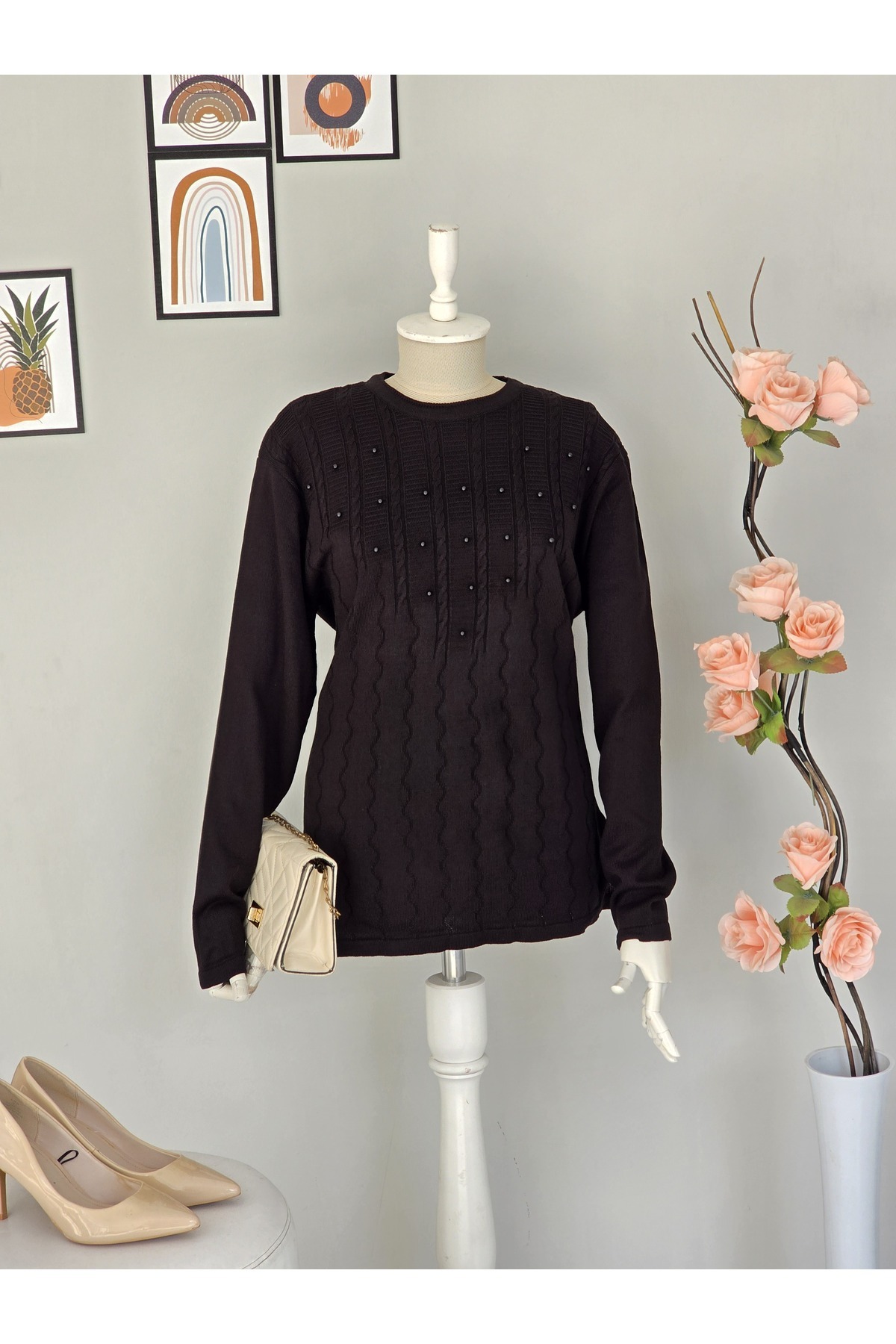 KADIN TRİKO KAZAK ORTA KALINLIKTA KISA BONCUK DETAYLI KADIN TRİKO KAZAK ORTA KALINLIKTA KISA BONCUK DETAYLI NF2227 42-44