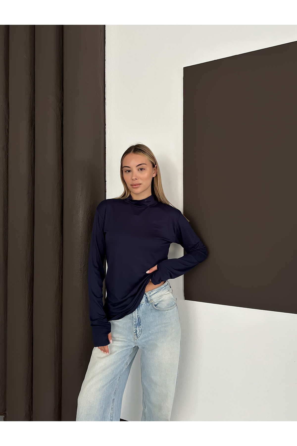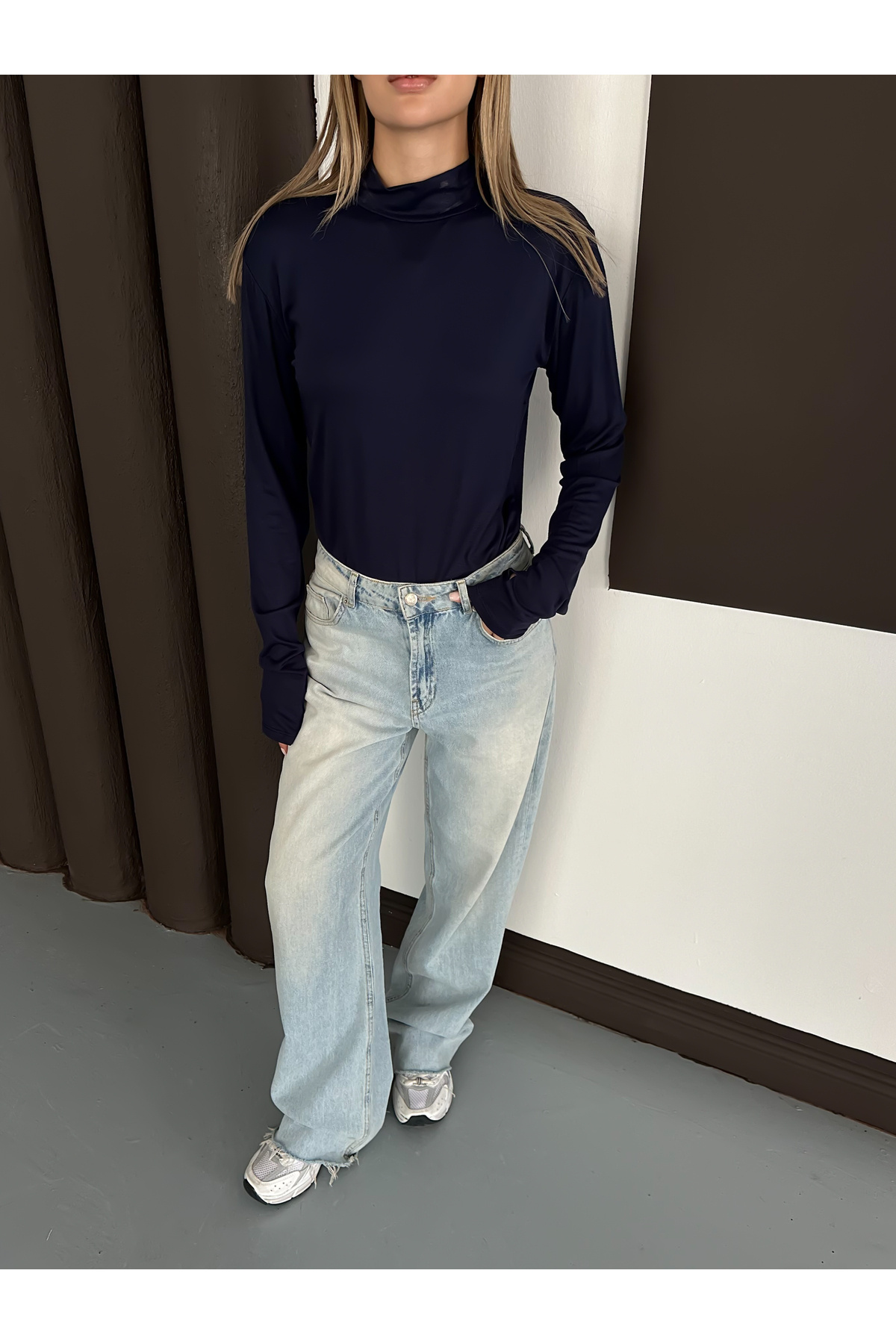 Kadın Lacivert Parmak Detaylı Body Kadın Lacivert Parmak Detaylı Body RDKGİYİMPARMAK XL