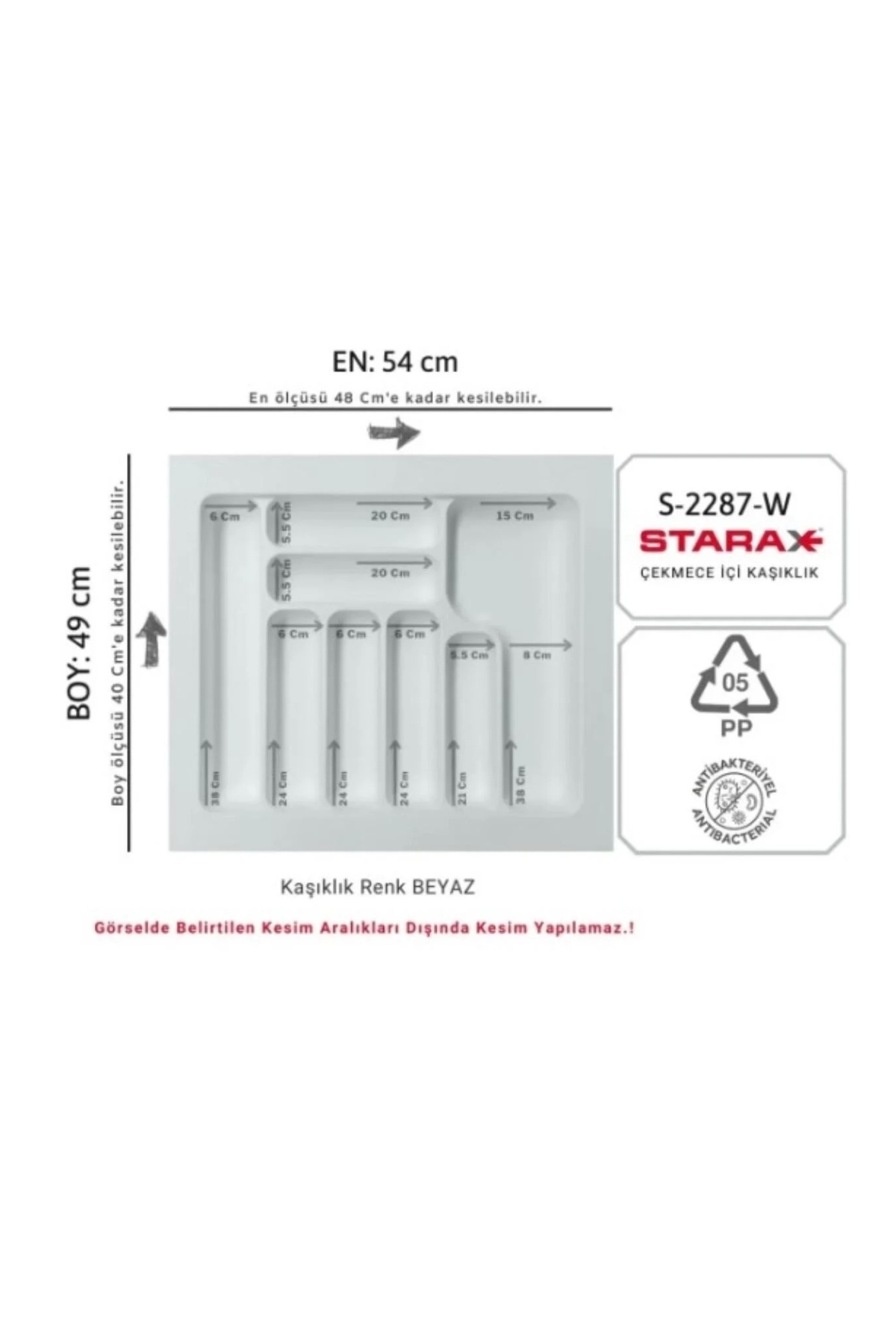 S-2287-WP ÇEKMECE İÇİ KAŞIKLIK/KEPÇELİK 60LİK MODÜL BEYAZ EN:54-48 D:49-41CM ARASI KESİLİR S-2287-WP ÇEKMECE İÇİ KAŞIKLIK/KEPÇELİK 60LİK MODÜL BEYAZ EN:54-48 D:49-41CM ARASI KESİLİR STARAX 60LIK MODÜL54*49KAŞIKLIK/KEPÇELİK تک سایز