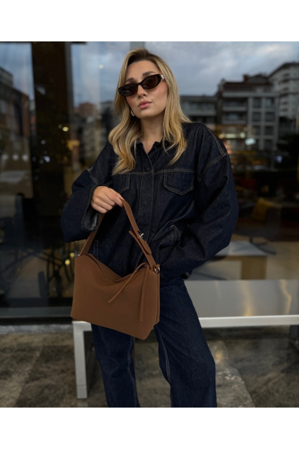 Süet kilit detay kadın el ve omuz çantası taba Süet kilit detay kadın el ve omuz çantası taba kdlsndme تک سایز