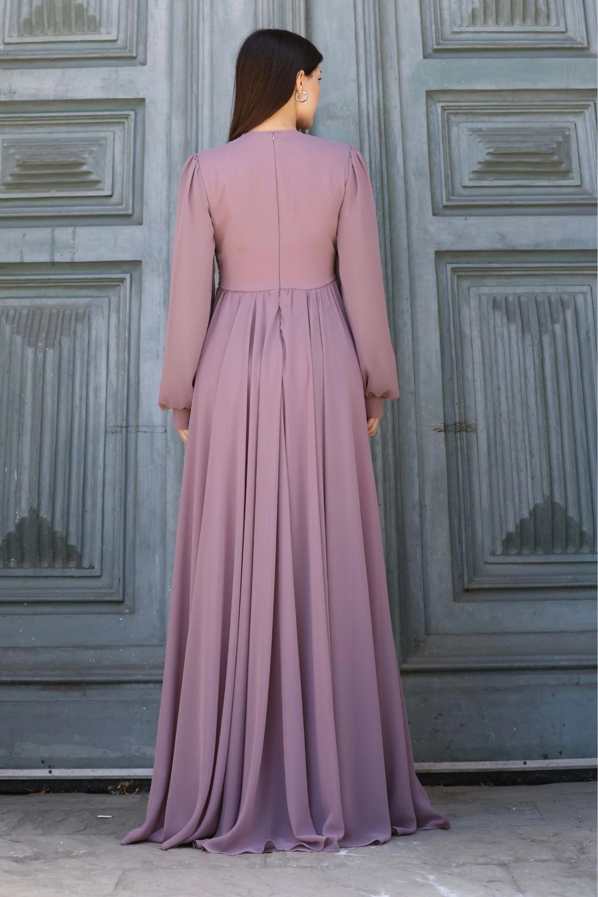 Bel Detaylı Kruvaze Yaka Abiye Elbise 2763-Gül Kurusu Bel Detaylı Kruvaze Yaka Abiye Elbise 2763-Gül Kurusu İNF2763 44
