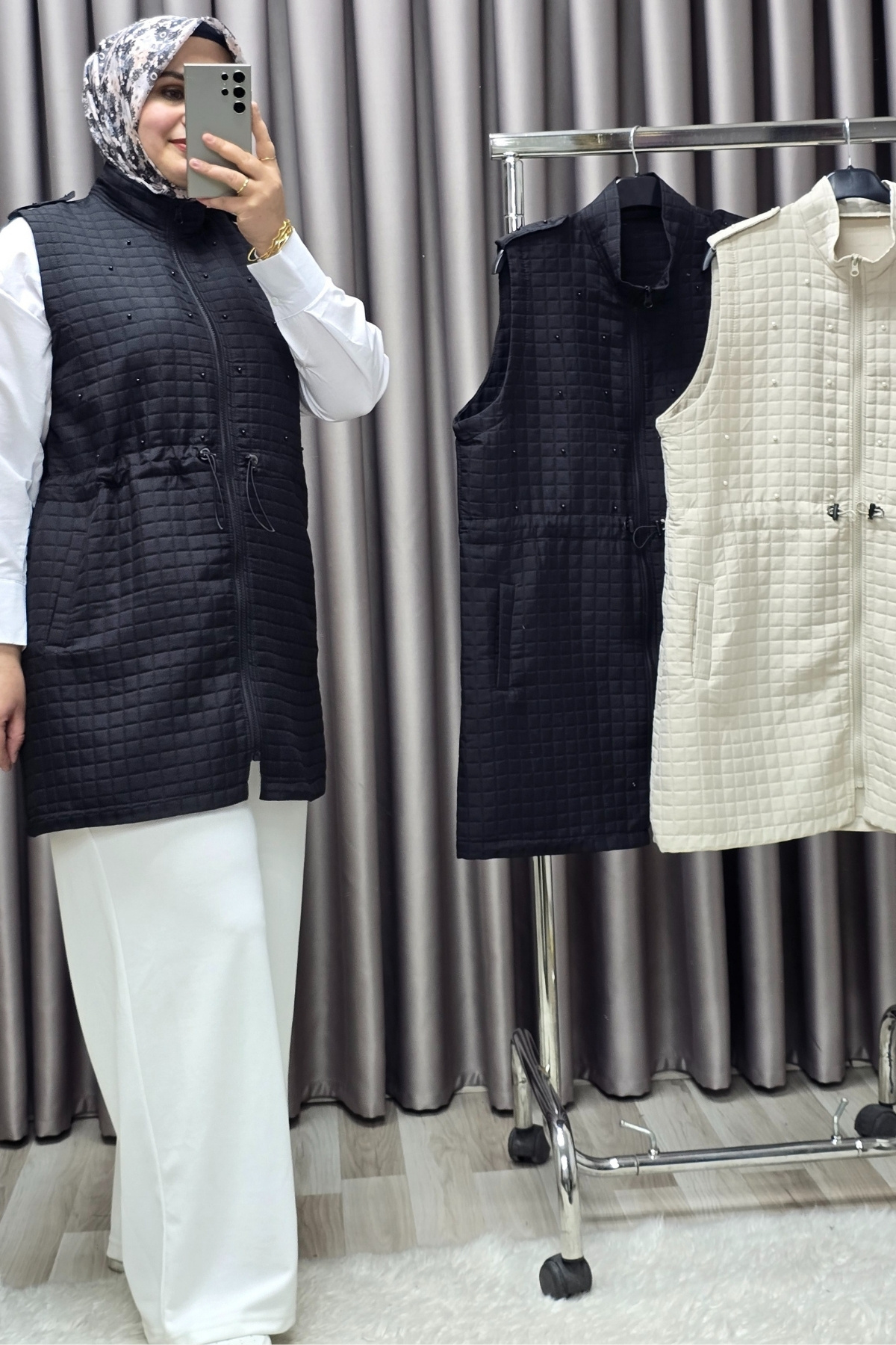 Kadın Giyim Büyük Beden İnci Detay Kapitone Yelek Kadın Giyim Büyük Beden İnci Detay Kapitone Yelek ELT1205 0