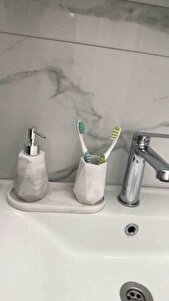 Mermer Dokulu 3 Parça Premium Banyo Takımı | Sıvı Sabunluk, Fırçalık ve Mermer Desenli Tepsi Mermer Dokulu 3 Parça Premium Banyo Takımı | Sıvı Sabunluk, Fırçalık ve Mermer Desenli Tepsi 081020 تک سایز