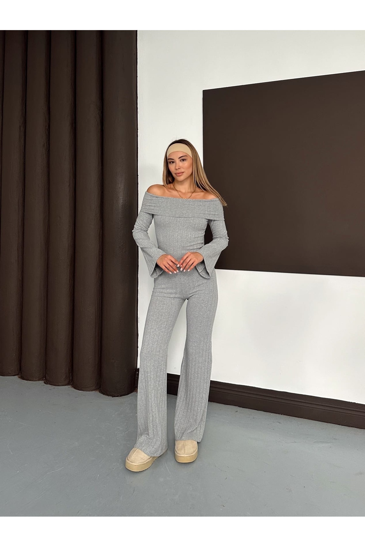 Kadın Gri Kalın Fitilli Madonna Yaka İspanyol Kol & Paça Alt-Üst Takım Kadın Gri Kalın Fitilli Madonna Yaka İspanyol Kol & Paça Alt-Üst Takım 3765 Standart