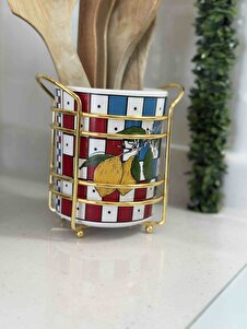 Mutfak Aksesuarı Seramik Metalli Kaşıklık Damalı Limonlu Desen GOLD - Feray Home Mutfak Aksesuarı Seramik Metalli Kaşıklık Damalı Limonlu Desen GOLD - Feray Home K1941 تک سایز
