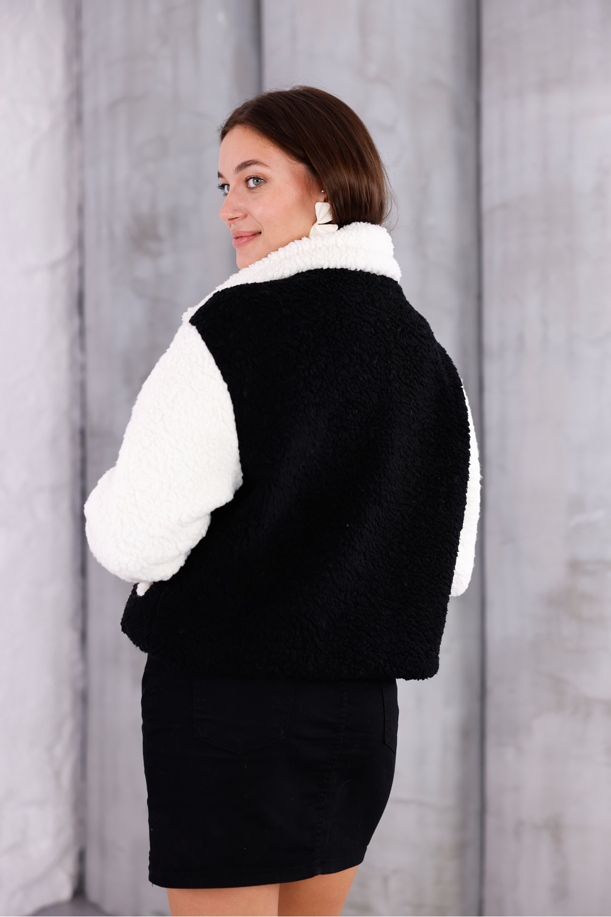 Peluş Çift Renk Kadın Astarlı Mont Siyah Beyaz Peluş Çift Renk Kadın Astarlı Mont Siyah Beyaz PeluşÇift L