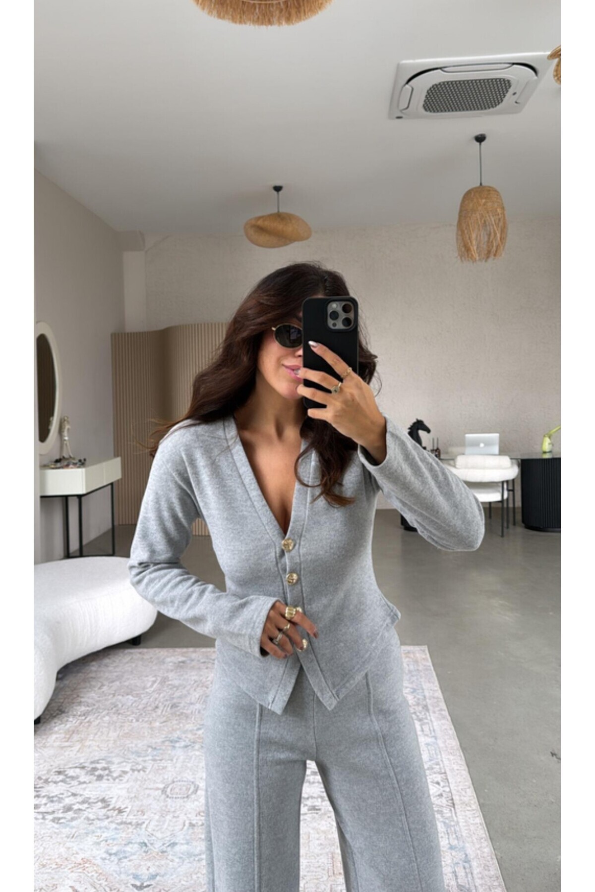 Selanik Triko ZR Model Gold Düğmeli Hırka - Çimalı Palazzo Pantolon Takım Selanik Triko ZR Model Gold Düğmeli Hırka - Çimalı Palazzo Pantolon Takım MRS0217 XL