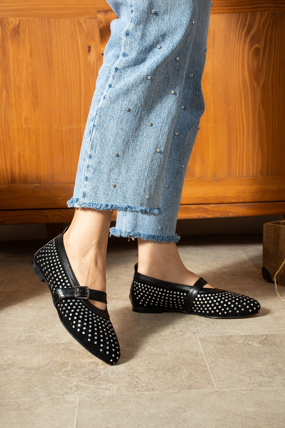 MİLAN SİYAH TAŞLI DANA SÜET BABET AYAKKABI MİLAN SİYAH TAŞLI DANA SÜET BABET AYAKKABI MİLANBERFONASUMMER25 42