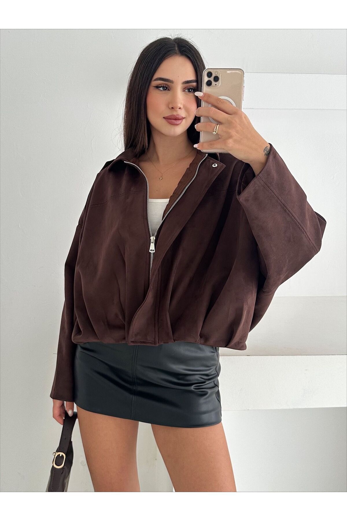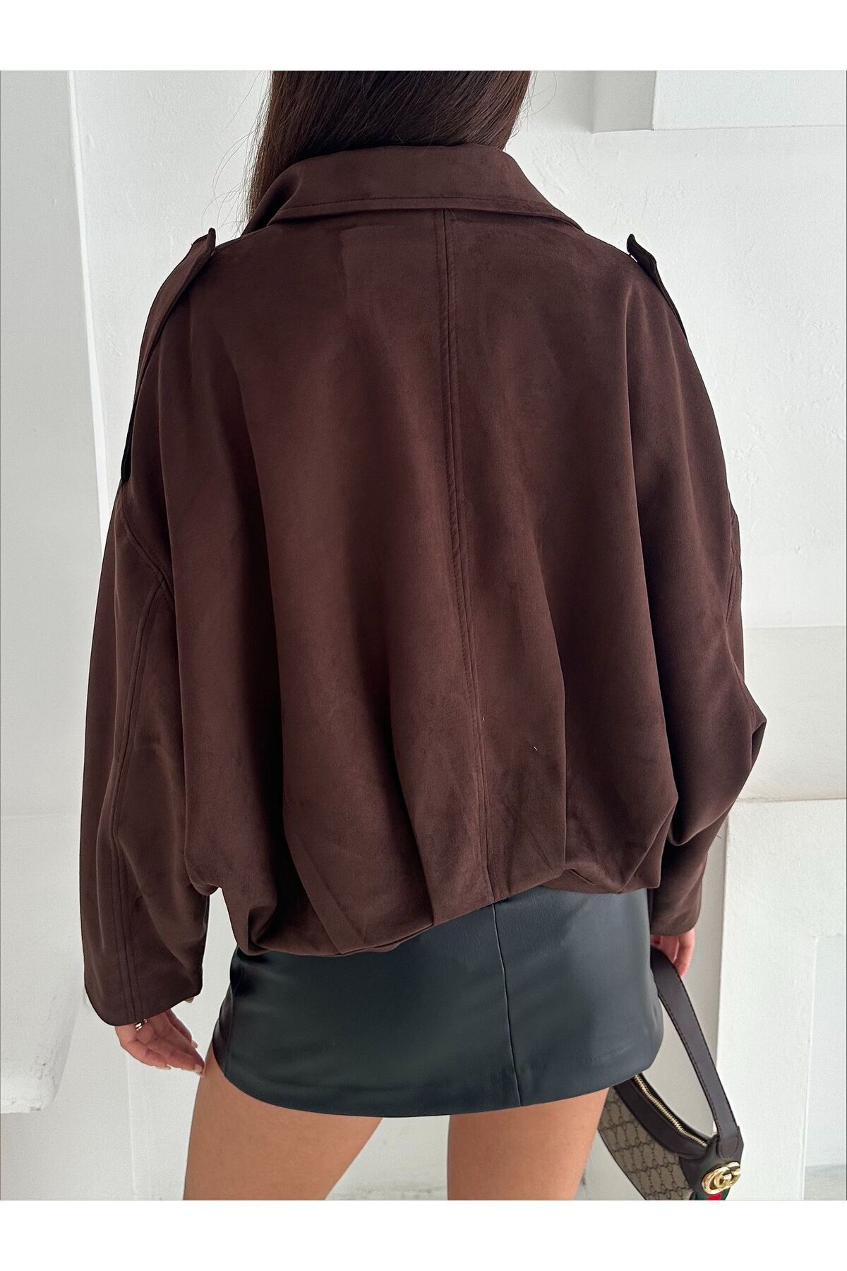 Apolet Detaylı Oversize Süet Kumaş Ceket Apolet Detaylı Oversize Süet Kumaş Ceket 4845112541410yukimay L