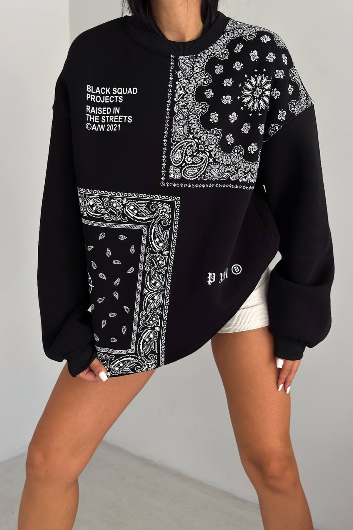 etnik halı deseni Tasarım Baskılı Oversize Siyah Kapüşonlu Sweatshirt etnik halı deseni Tasarım Baskılı Oversize Siyah Kapüşonlu Sweatshirt VSRNSWTPRT3MK34 XL
