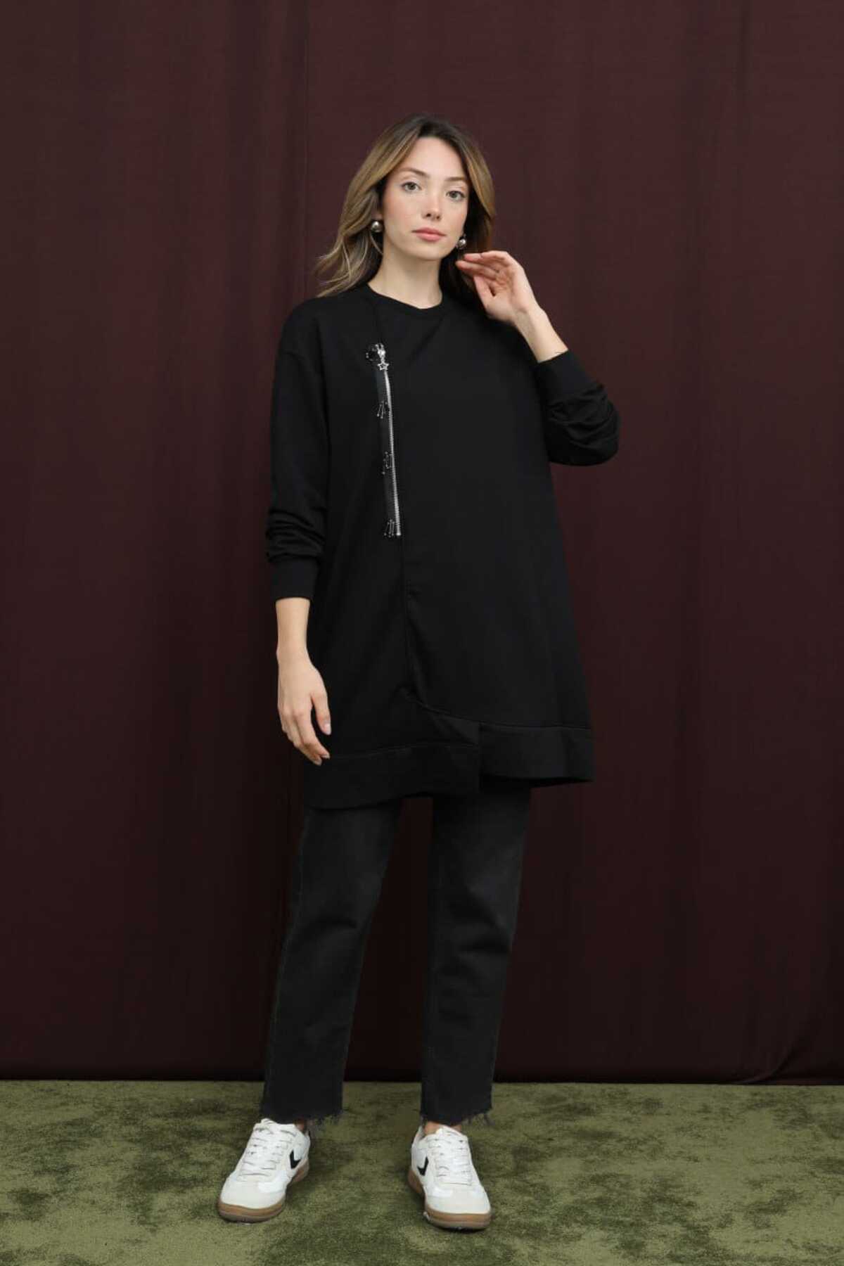 Kadın İki İplik Kumaş Boncuk İşlemeli Fermuar Detaylı Tunik Kadın İki İplik Kumaş Boncuk İşlemeli Fermuar Detaylı Tunik 10735 L