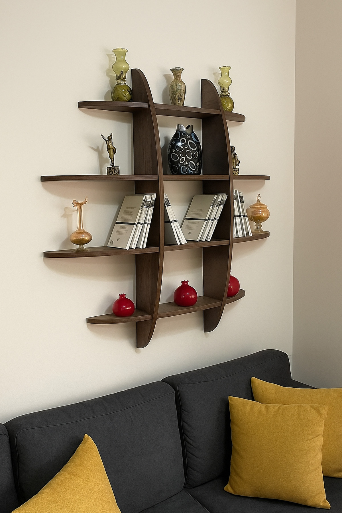 12 Raflı Dekoratif Ahşap Geniş Duvar Rafı 12 Raflı Dekoratif Ahşap Geniş Duvar Rafı GECME تک سایز