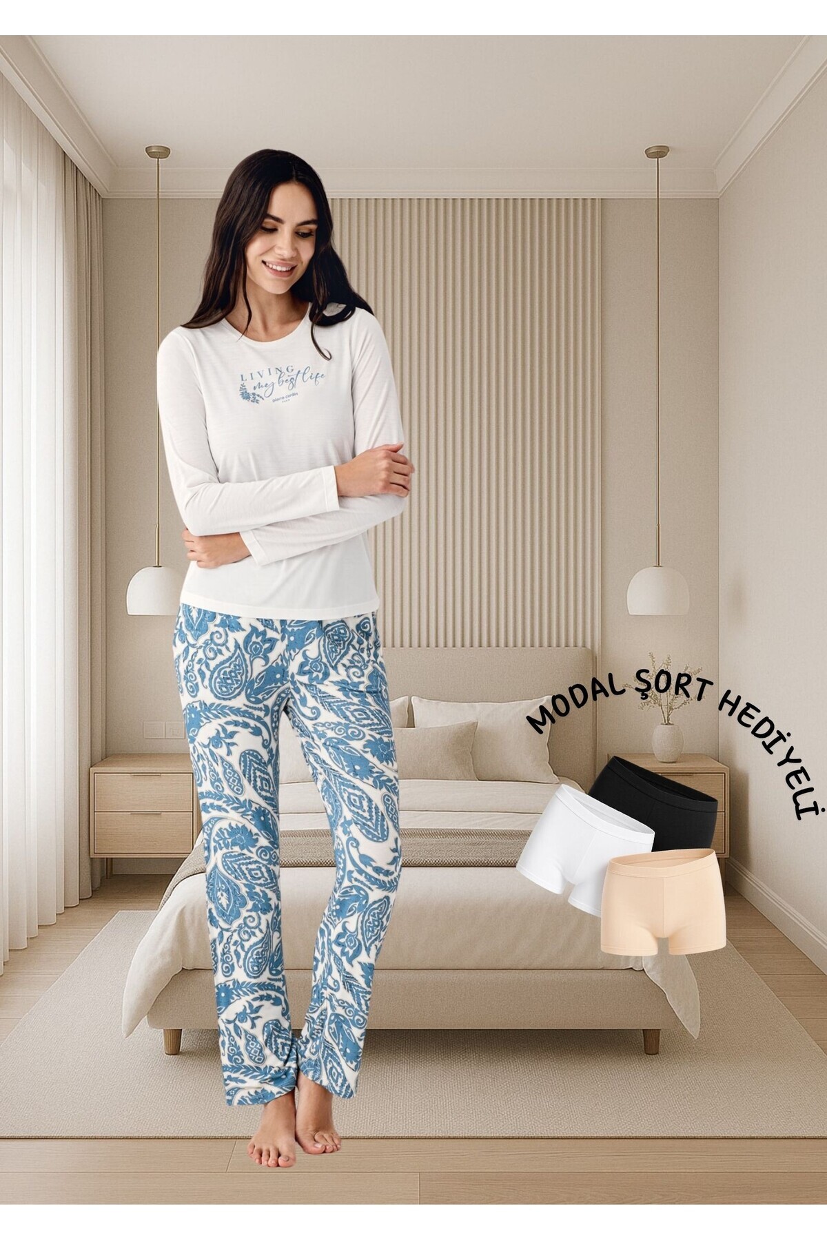 Kadın Düğmeli Yaka Pamuklu & Modal Uzun Kol Pijama Takımı (Modal Şort Hediye) Kadın Düğmeli Yaka Pamuklu & Modal Uzun Kol Pijama Takımı (Modal Şort Hediye) L1.PC.9075.001 XL