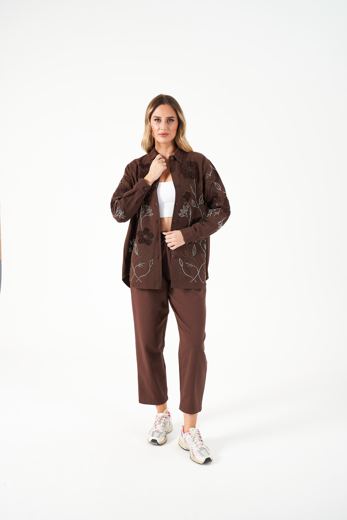 KADIN ÖNÜ VE KOLLARI BONCUK İŞLEMELİ GABARDİN GÖMLEK PANTOLON TAKIN KADIN ÖNÜ VE KOLLARI BONCUK İŞLEMELİ GABARDİN GÖMLEK PANTOLON TAKIN 2074-7275 XL