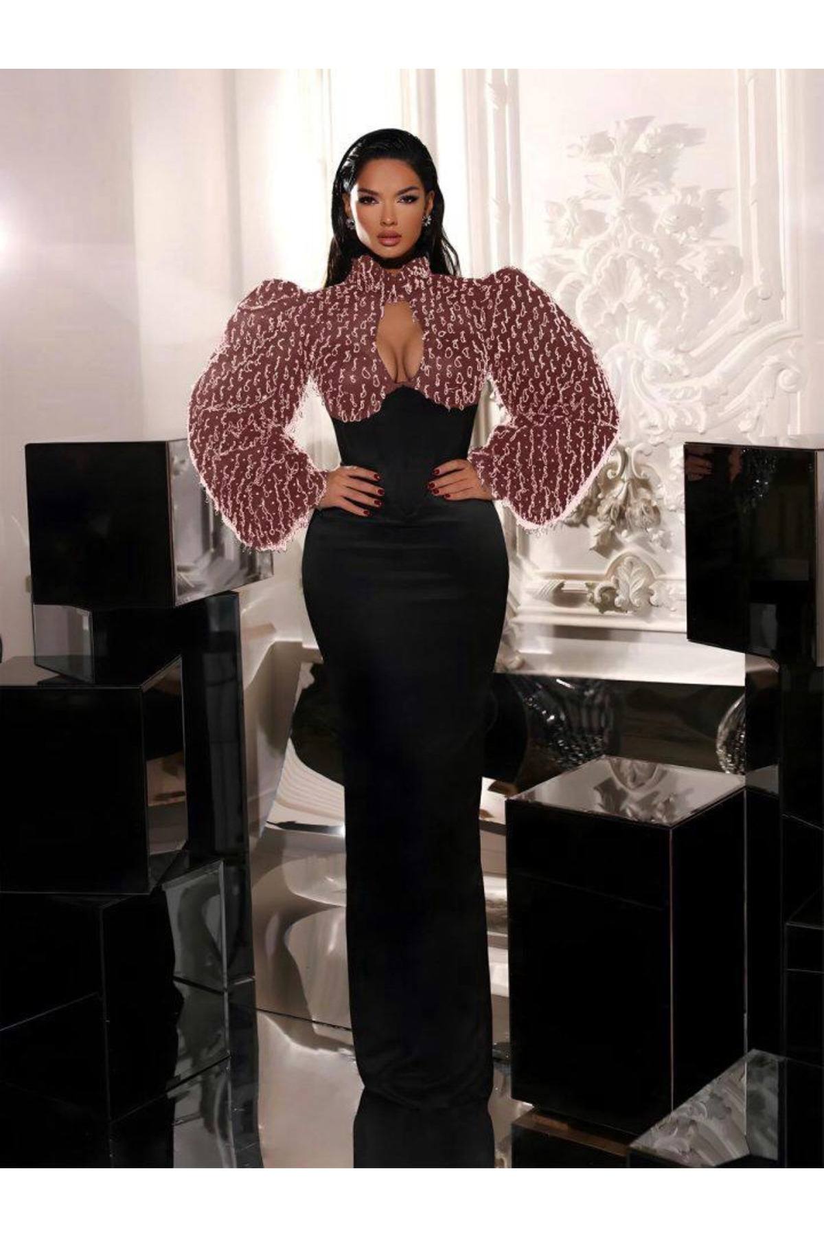 İthal Buzi Kumaş Garnili ZR Model Elbise İthal Buzi Kumaş Garnili ZR Model Elbise ENF-1918c52e4497a92a8304 XL