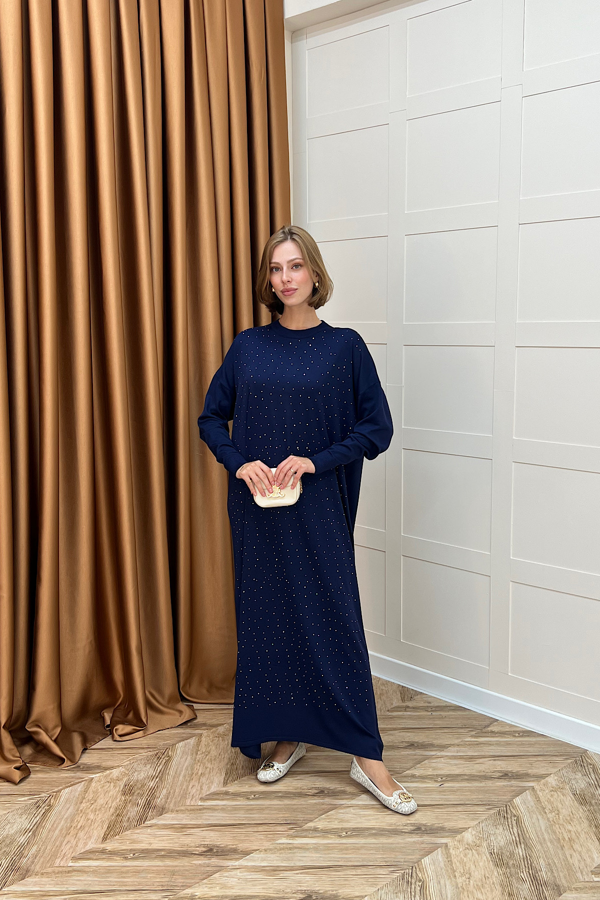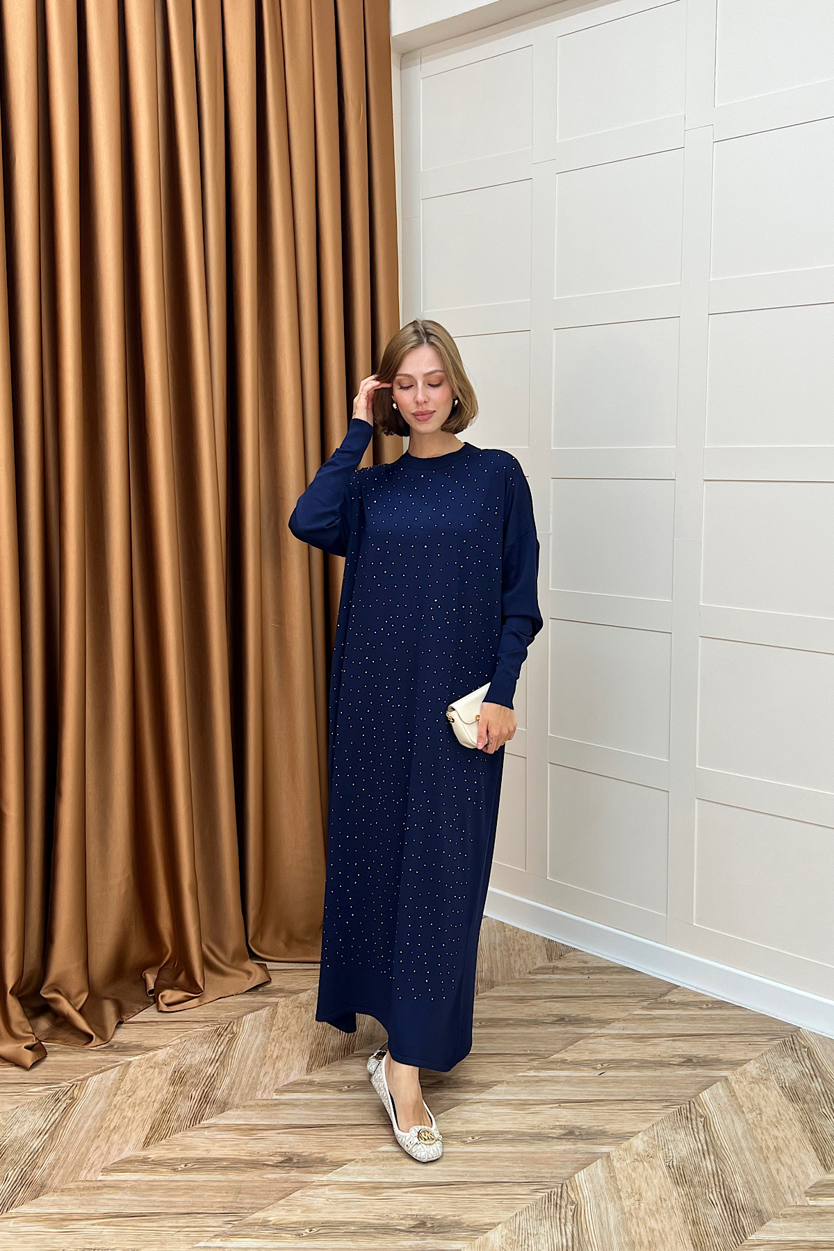 Mabel Taşlı Triko Elbise Lacivert Mabel Taşlı Triko Elbise Lacivert 25270 Standart