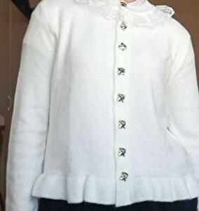 Fırfırlı İşlemeli Yaka Triko Hırka LKİ0049 EKRU Fırfırlı İşlemeli Yaka Triko Hırka LKİ0049 EKRU Standart