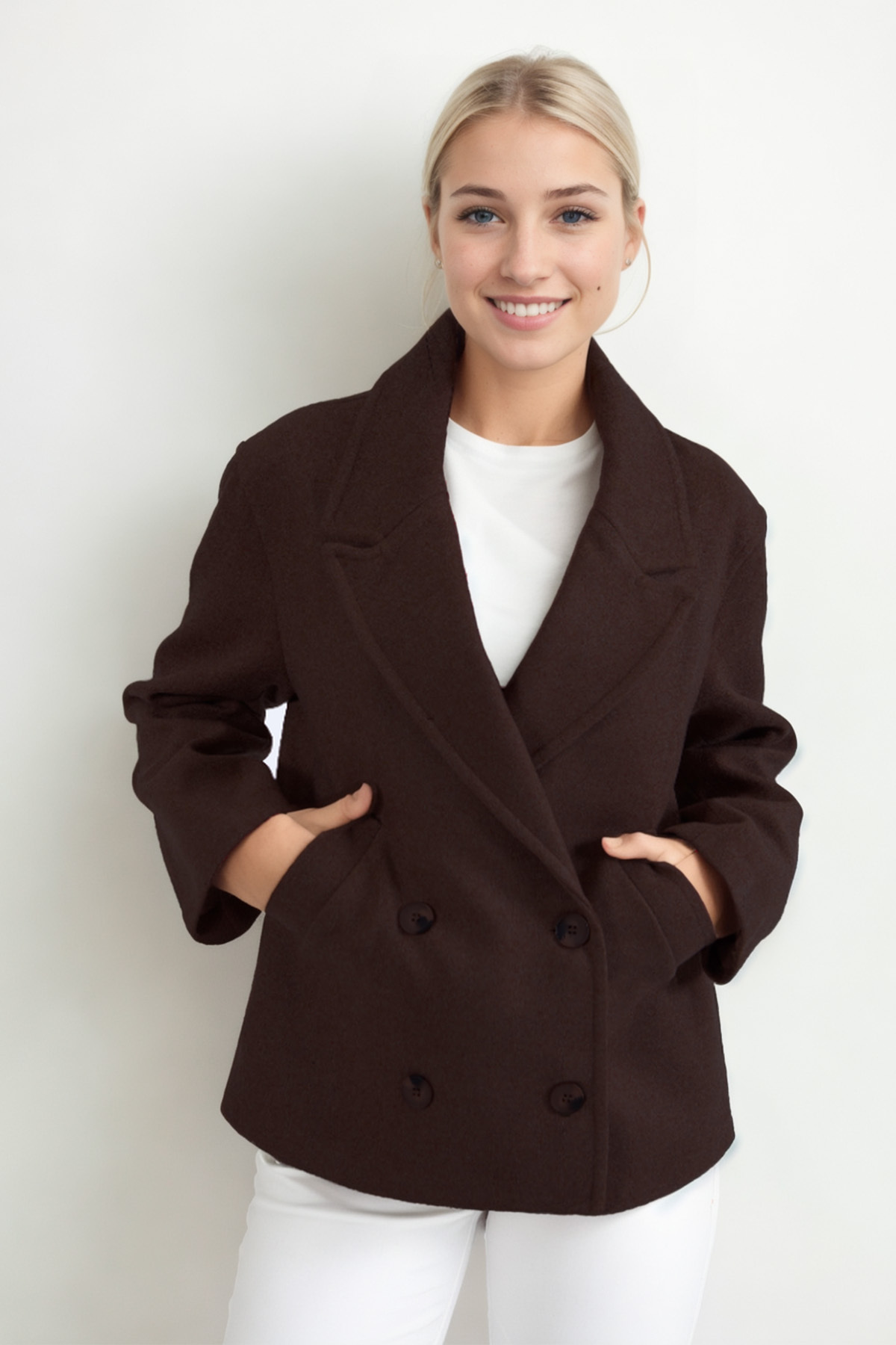 Kruvaze Kısa Kaşe Kaban LRG0053 KAHVERENGİ Kruvaze Kısa Kaşe Kaban LRG0053 KAHVERENGİ 40