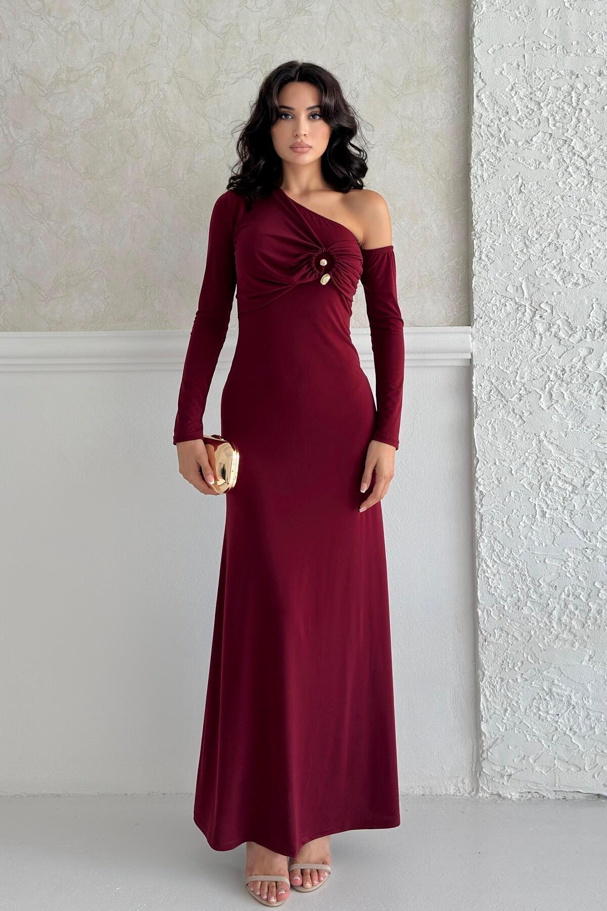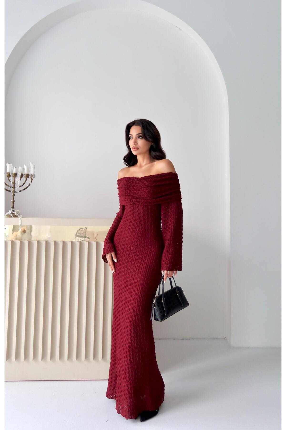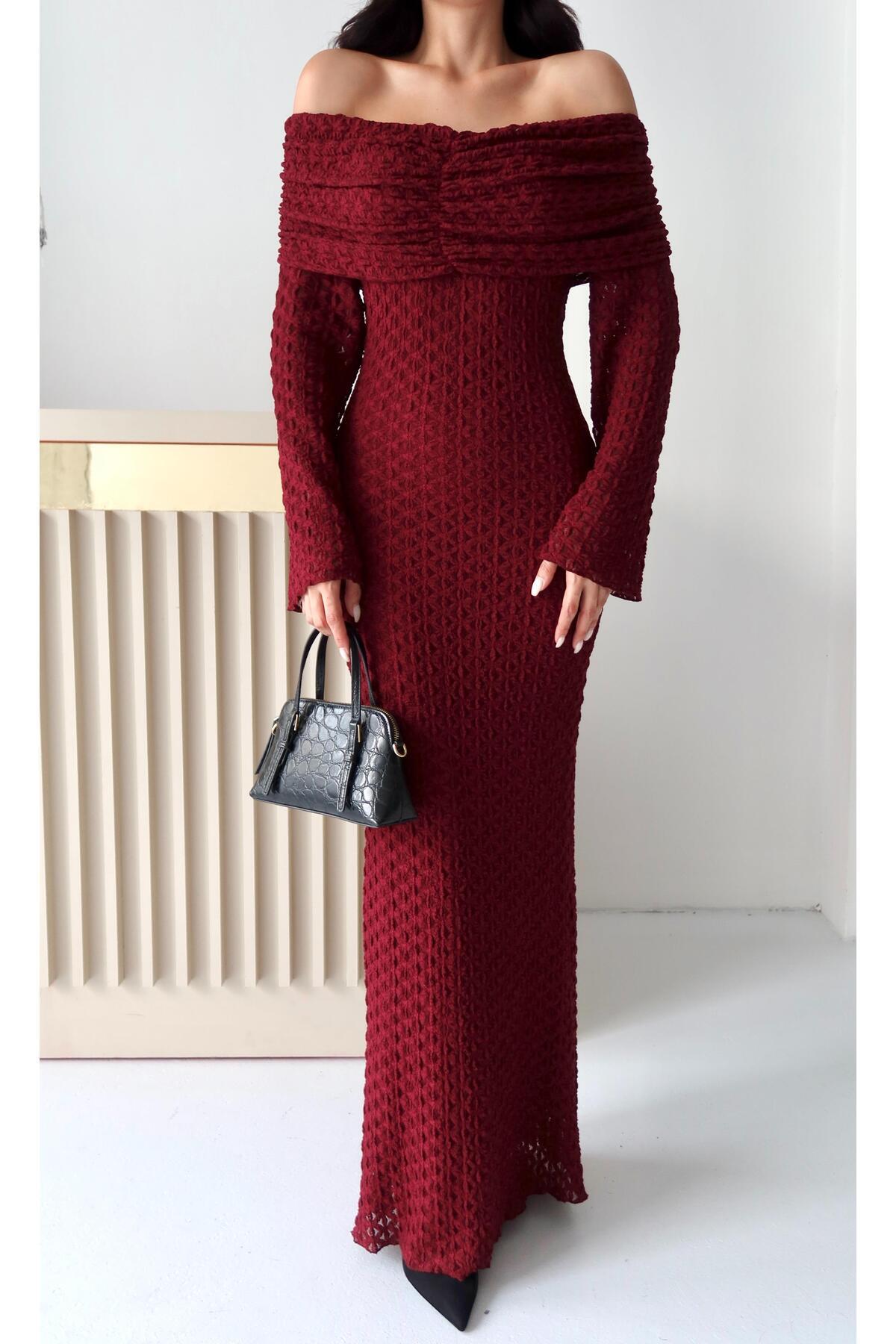 Bordo Madonna Yaka Astarlı Uzun Dantel Elbise Bordo Madonna Yaka Astarlı Uzun Dantel Elbise ST252722-1 XL
