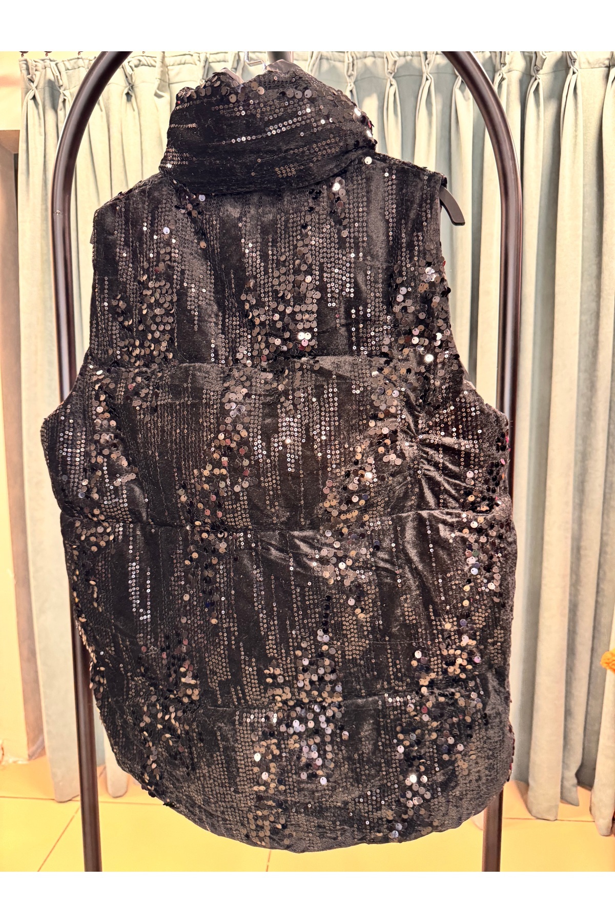 Payetli İthal Tasarım Taşlı Şişme Yelek siyah Payetli İthal Tasarım Taşlı Şişme Yelek siyah 2025YLK03 Standart