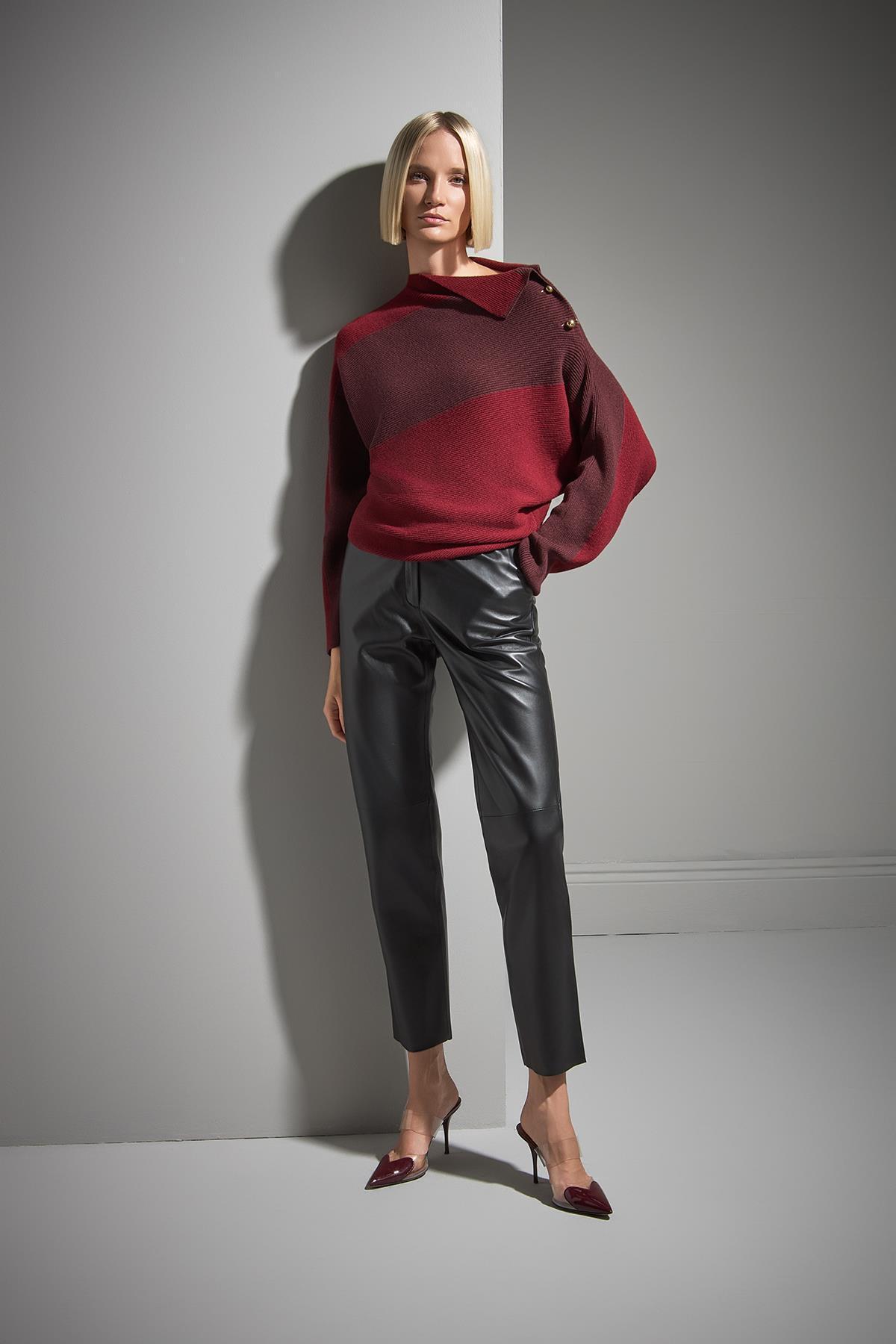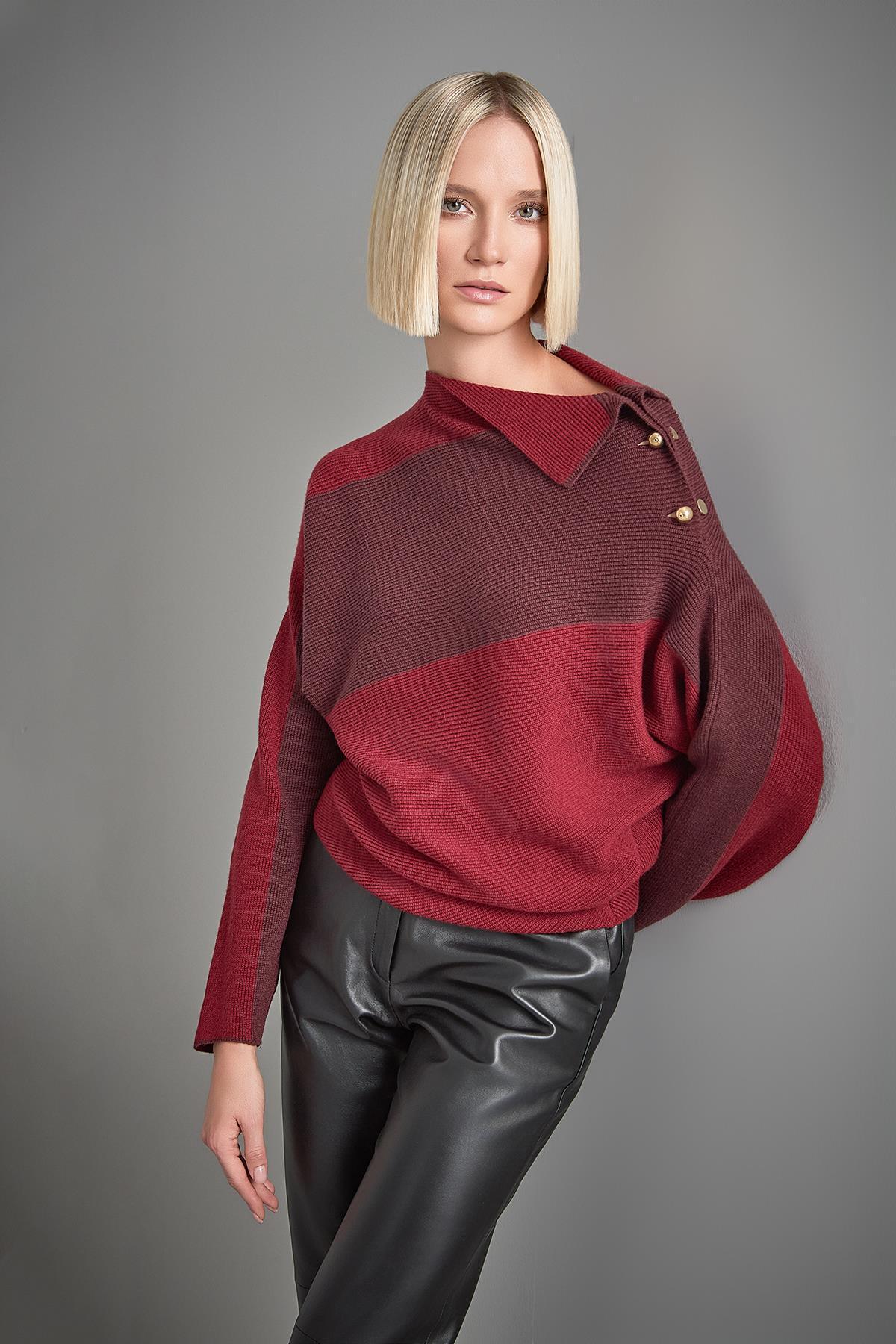 Renk Bloklu Düğme Detaylı Bordo Triko Kazak Renk Bloklu Düğme Detaylı Bordo Triko Kazak 2526W043610 L