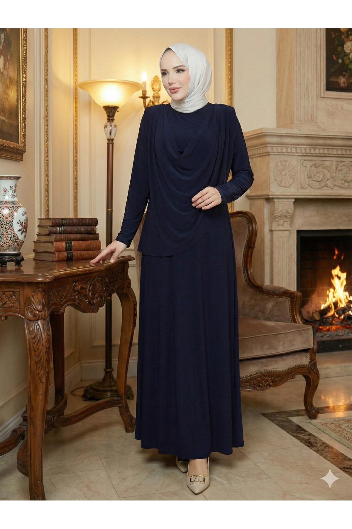 Kadın Sandy Lecivert Önü Degaje Detaylı Tesettür Elbise Kadın Sandy Lecivert Önü Degaje Detaylı Tesettür Elbise AHENK ELBİSE 44