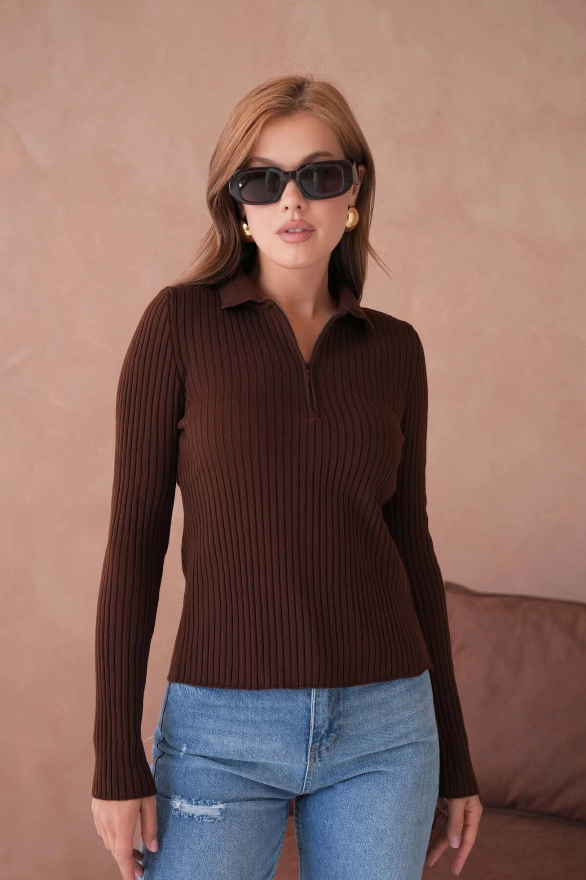 Kadın Polo Yaka Fermuar Detay Kaşkorse Triko Kazak Kadın Polo Yaka Fermuar Detay Kaşkorse Triko Kazak 12226 Standart