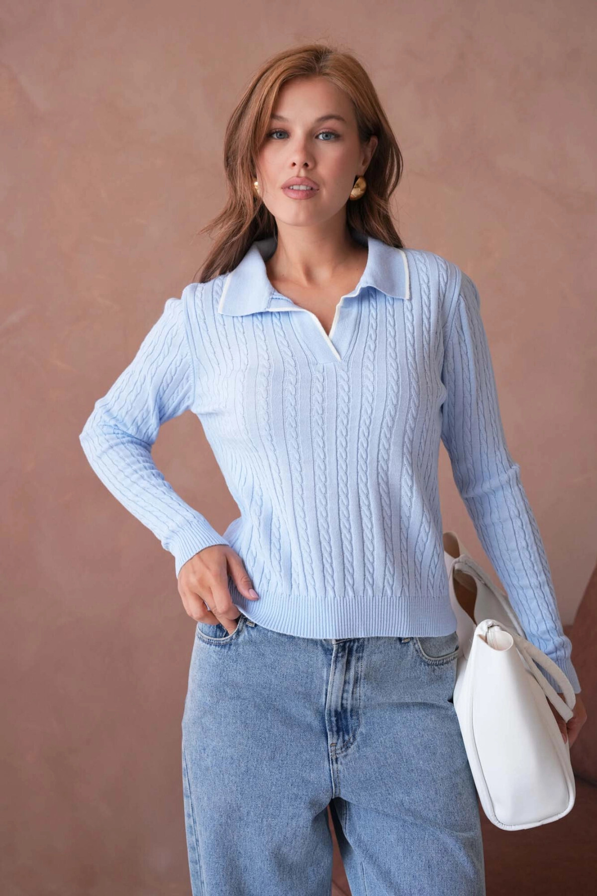 Kadın Polo Yaka Saç Örgü Triko Kazaak Kadın Polo Yaka Saç Örgü Triko Kazaak 12211 Standart