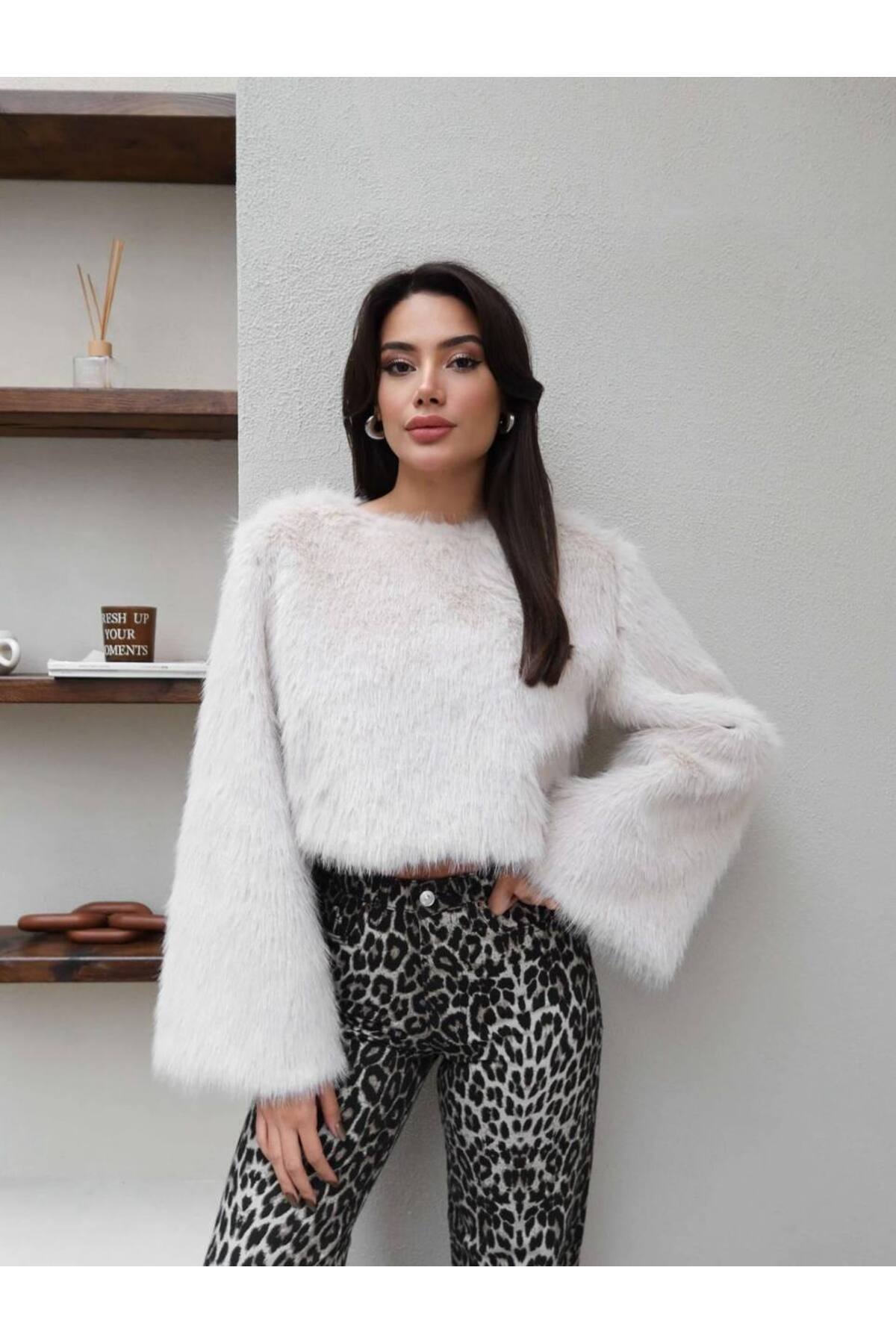 Rise Peluş Kürk Kazak Krem Rise Peluş Kürk Kazak Krem 118 26K8402 L