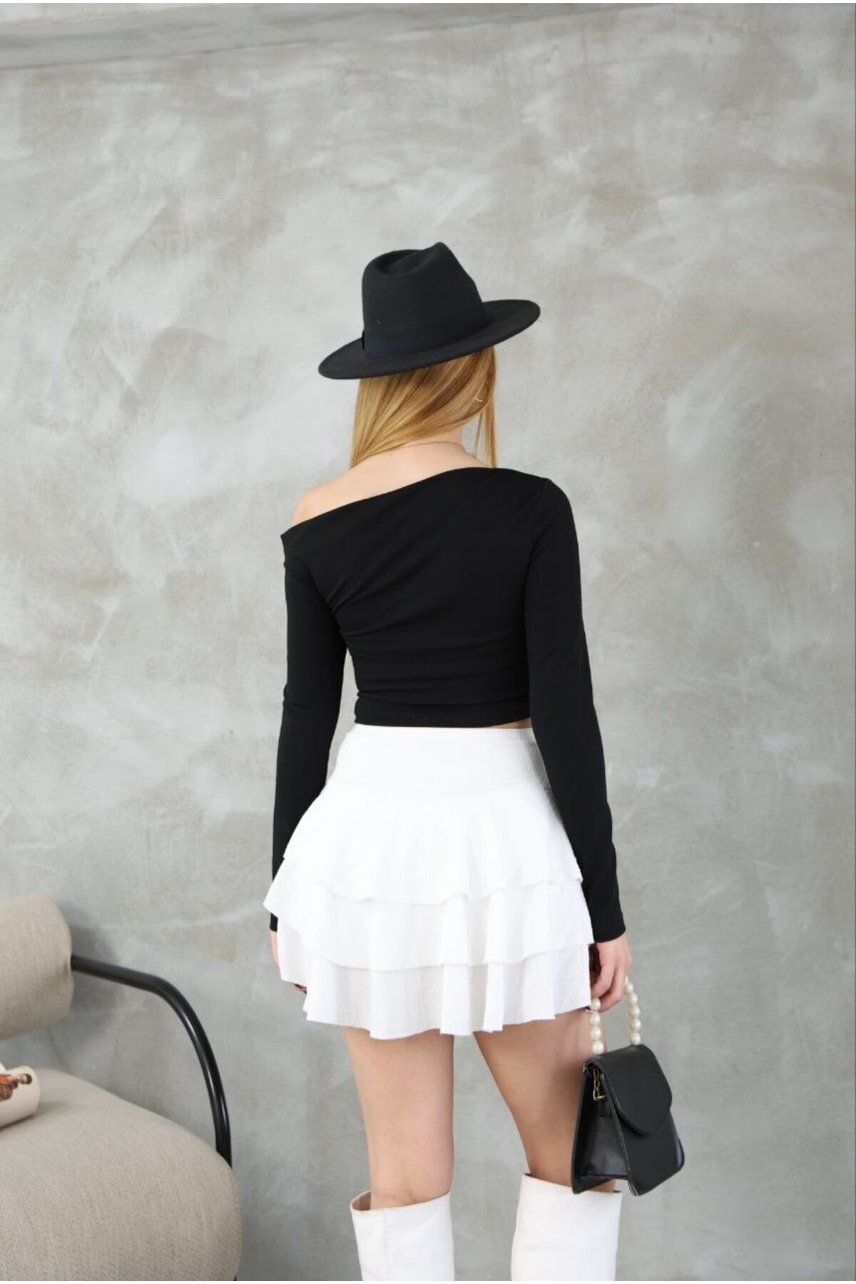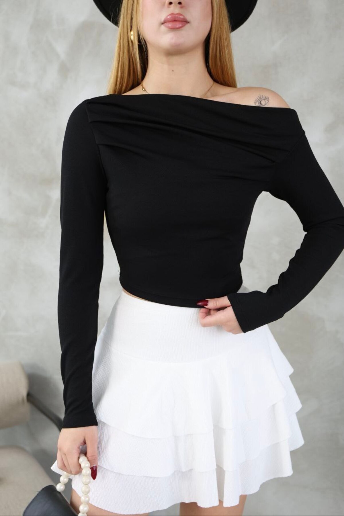 PİLELİ MADONNA YAKA CROP BLUZ PİLELİ MADONNA YAKA CROP BLUZ PMYC2025 L