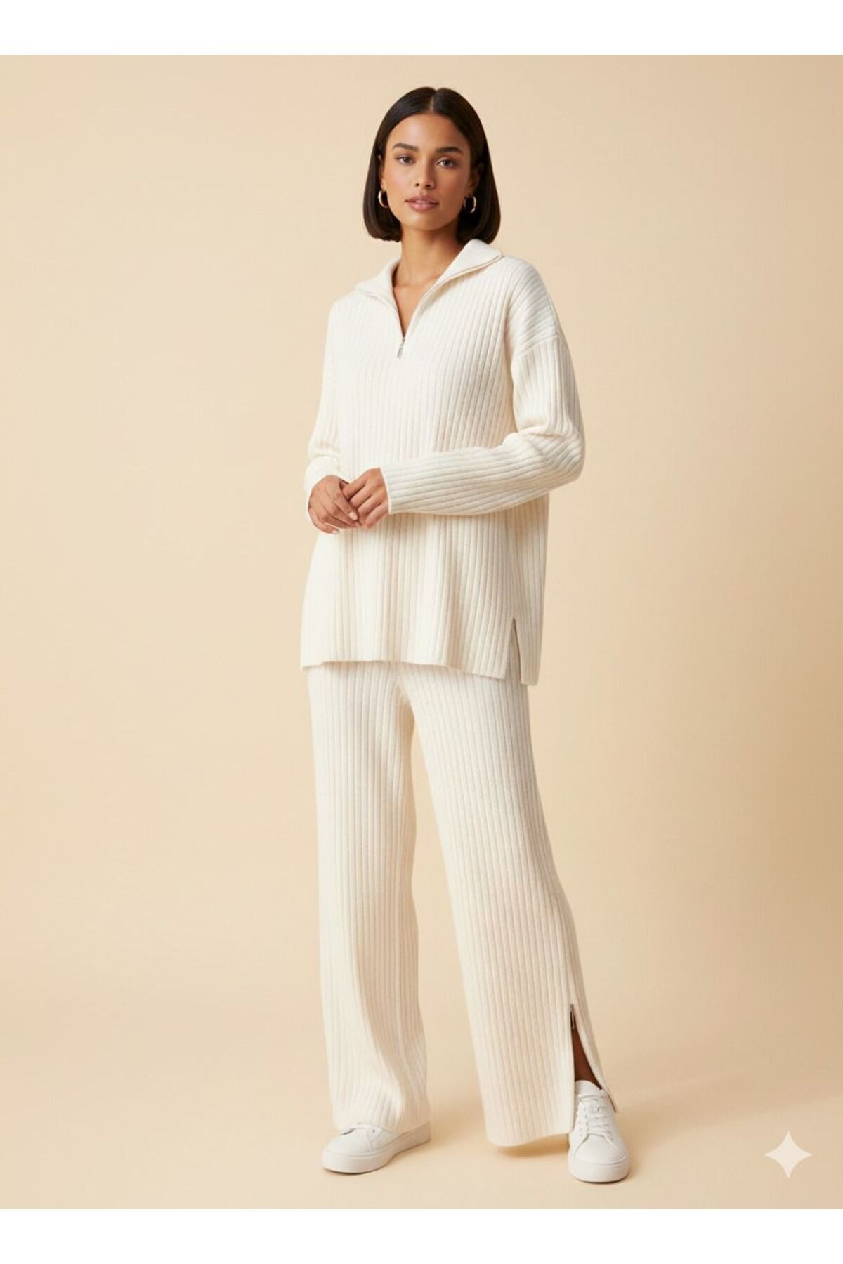 Kadın Fitilli Yaka Fermuarlı Yanlardan Paçası Yırtmaçlı Fermuarlı Triko Takım Alt Üst Takım Kadın Fitilli Yaka Fermuarlı Yanlardan Paçası Yırtmaçlı Fermuarlı Triko Takım Alt Üst Takım efttf XL