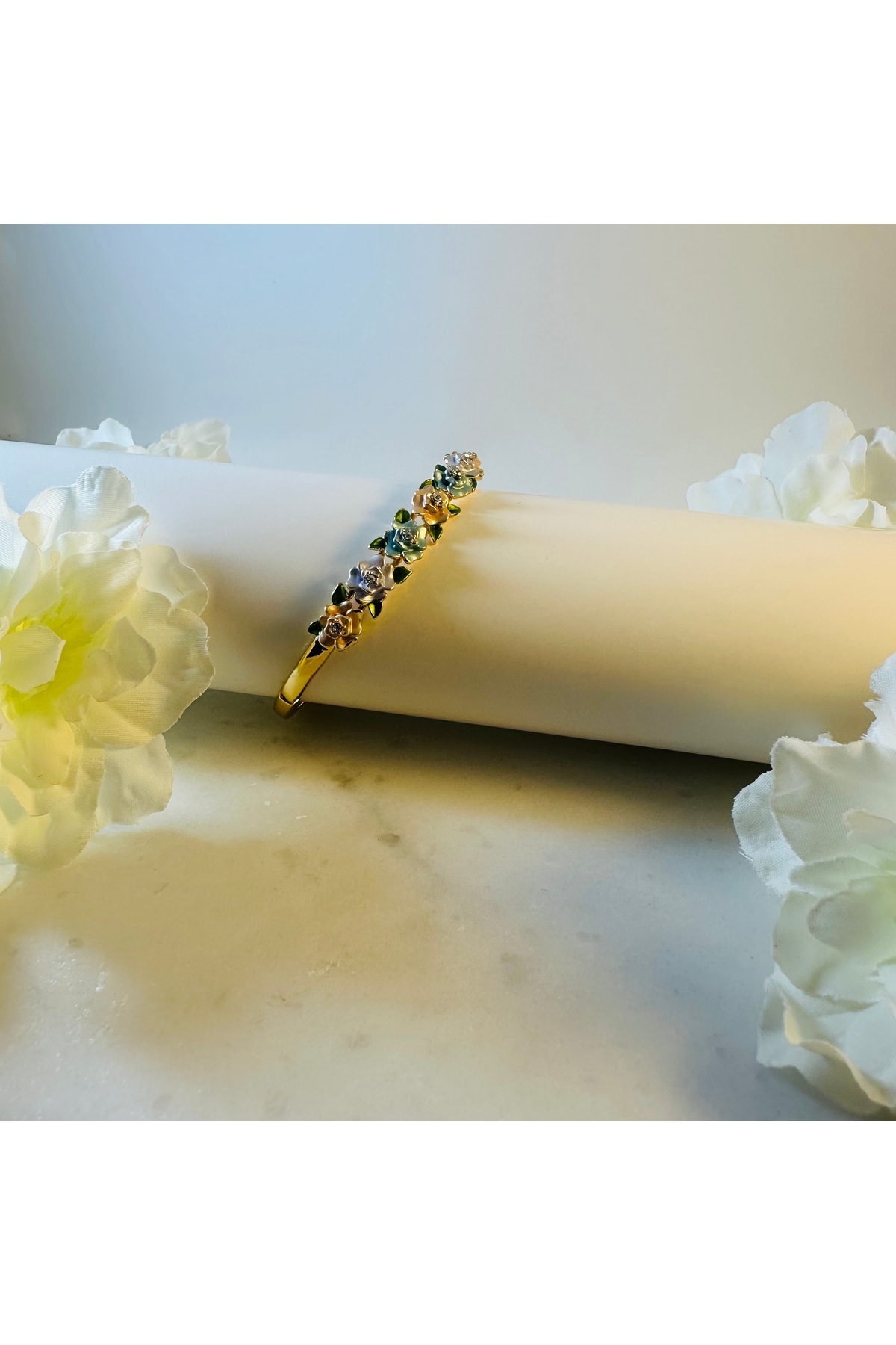 Mavi Tonlu Çiçek Desenli Mineli Çelik Kelepçe Bileklik Mavi Tonlu Çiçek Desenli Mineli Çelik Kelepçe Bileklik GM2025-A22344278 Standart