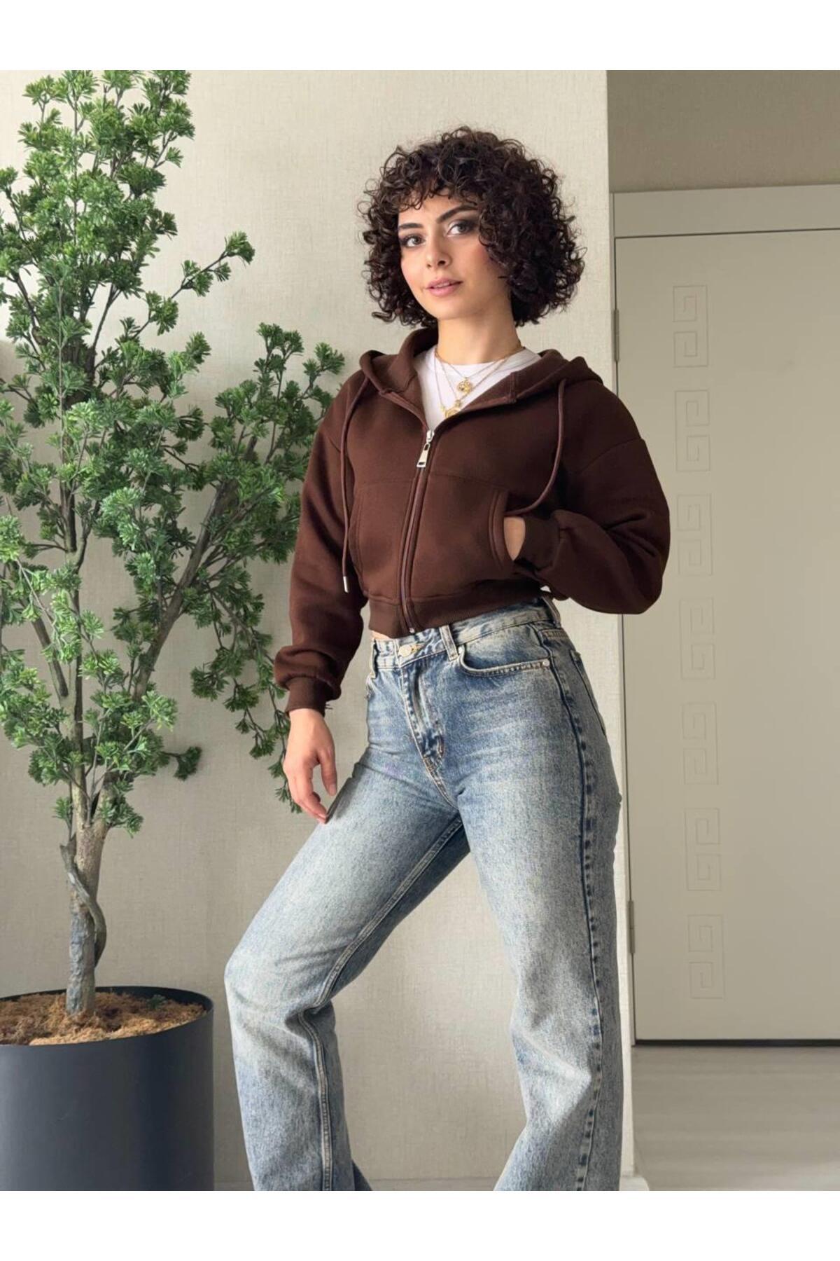 Kapüşonlu Crop Sweatshirt -Kahve Kapüşonlu Crop Sweatshirt -Kahve SWT070305 36