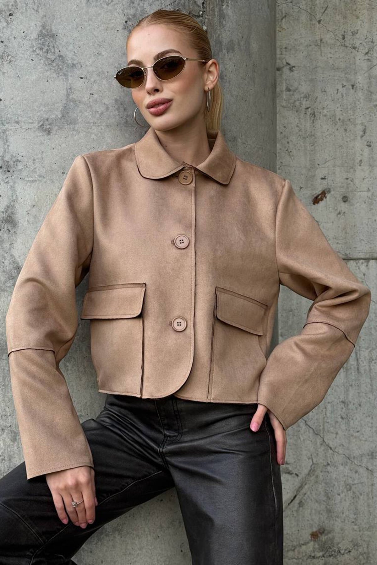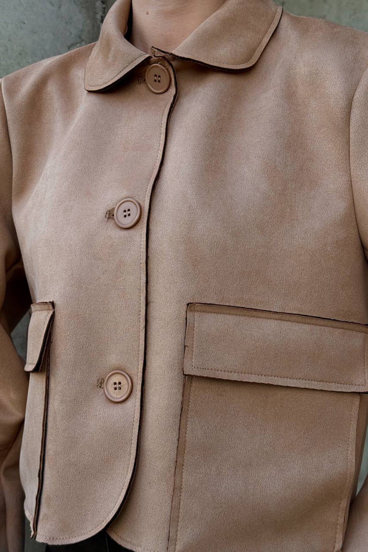 Kadın Bej Düğmeli Cep Detaylı Süet Ceket Vs01424 Kadın Bej Düğmeli Cep Detaylı Süet Ceket Vs01424 VS01424 L