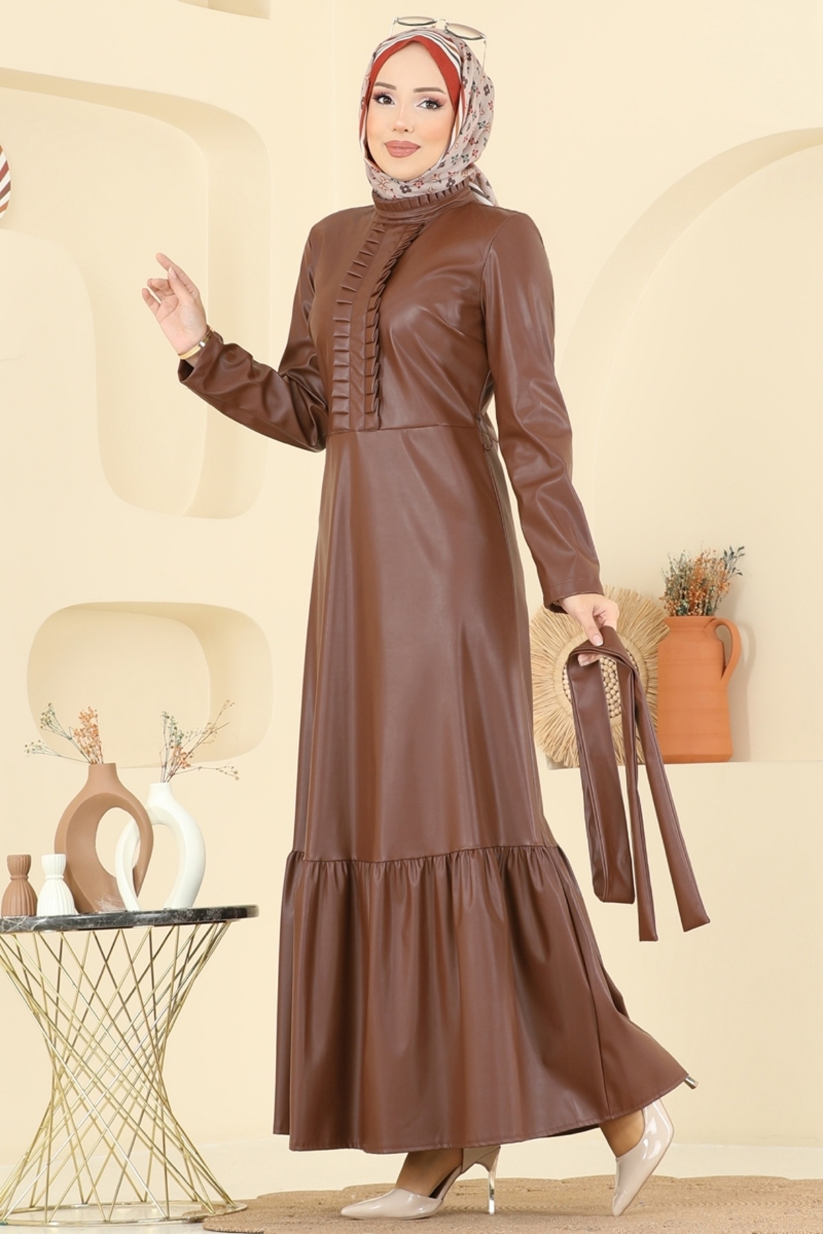 Beli Kemerli Deri Elbise 5285AL357-MS Taba Beli Kemerli Deri Elbise 5285AL357-MS Taba 46
